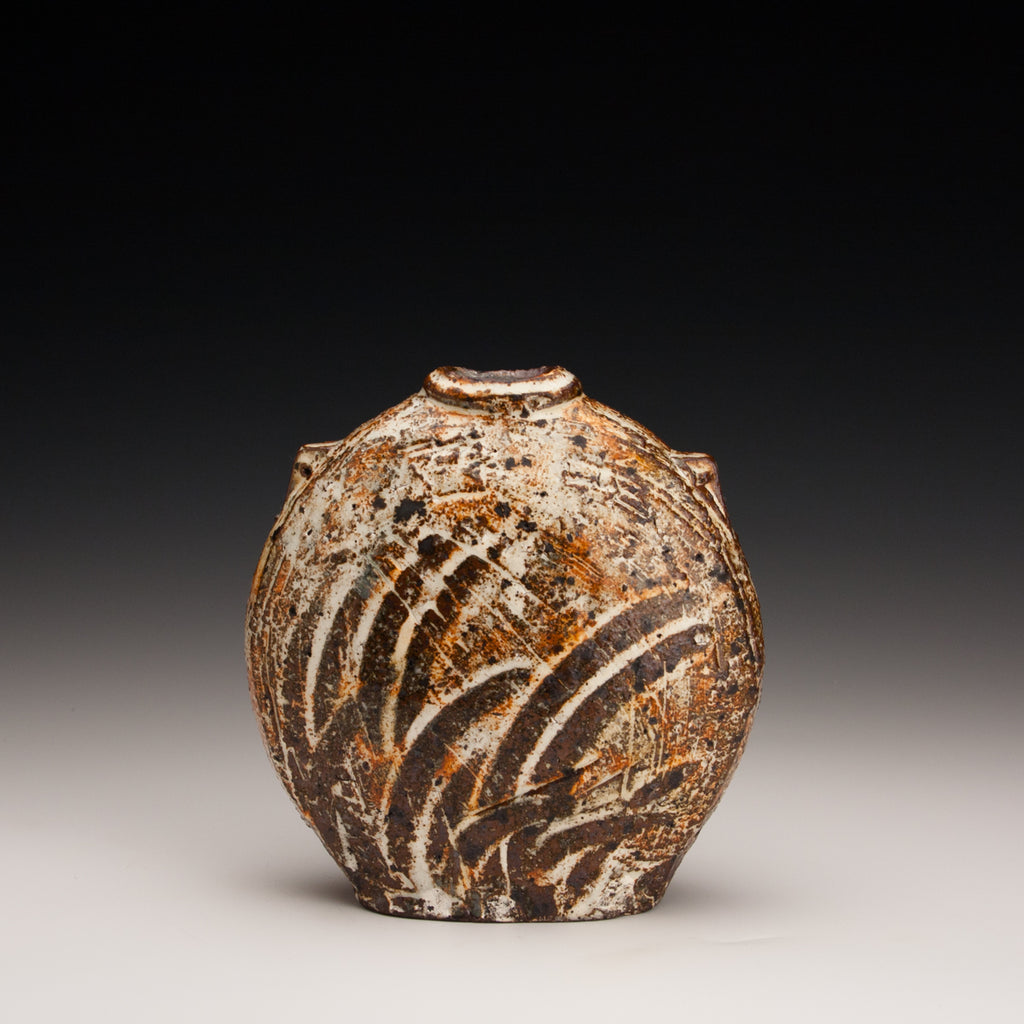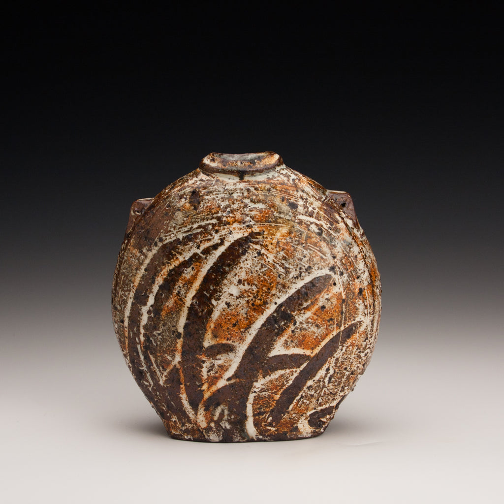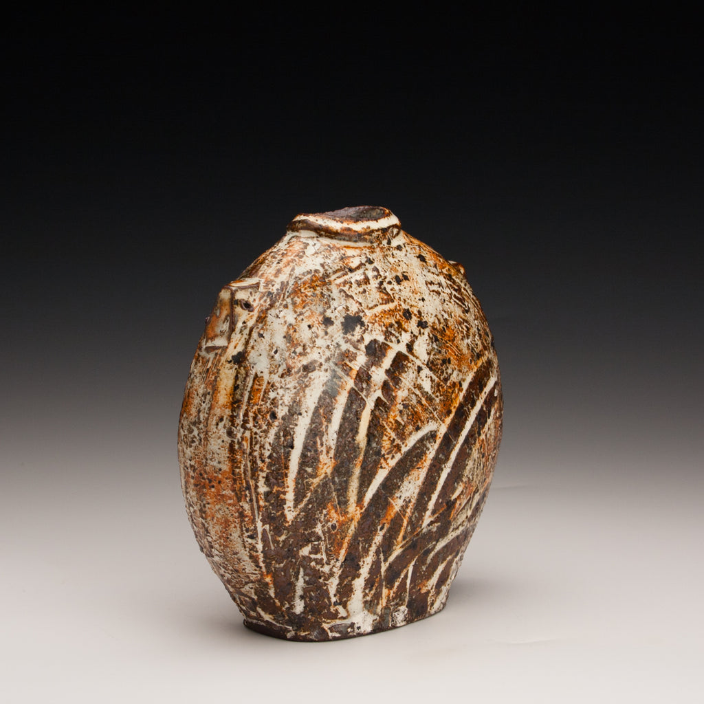 Wood fired local red clay. White slip, finger wipes and clear Glaze 6.5 x 3 x 3.25