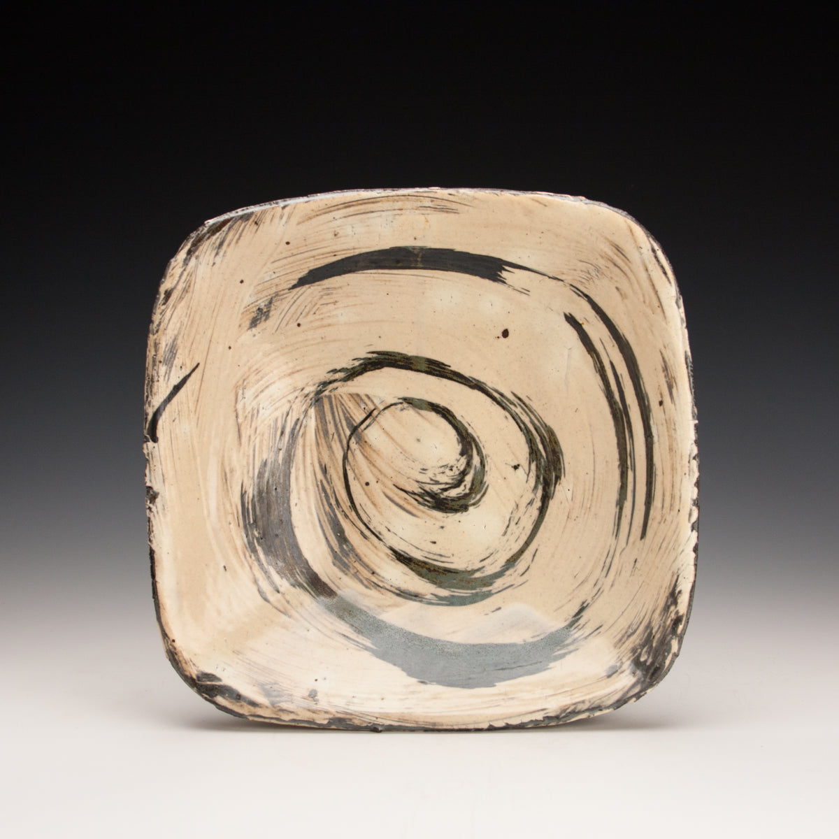 Wood fired local red clay. Hakame slip, black iron deco and clear Glaze. 2.25 x 9.5