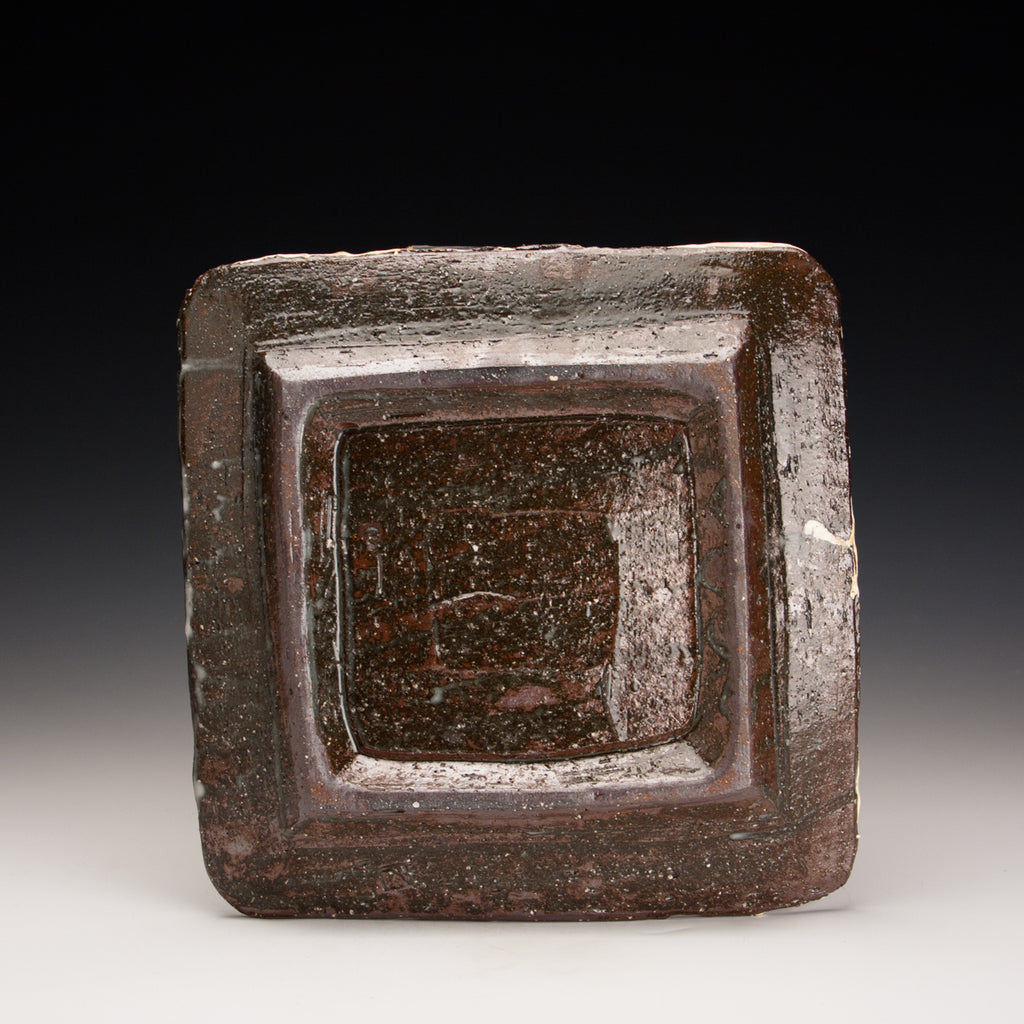 Wood fired local red clay. White slip, sgraffito and clear glaze. 9 x 1.75