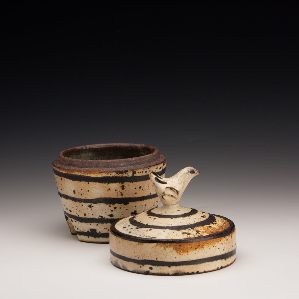 Wood fired local red clay. Wax resist and iron wash. 6 x 4.5
