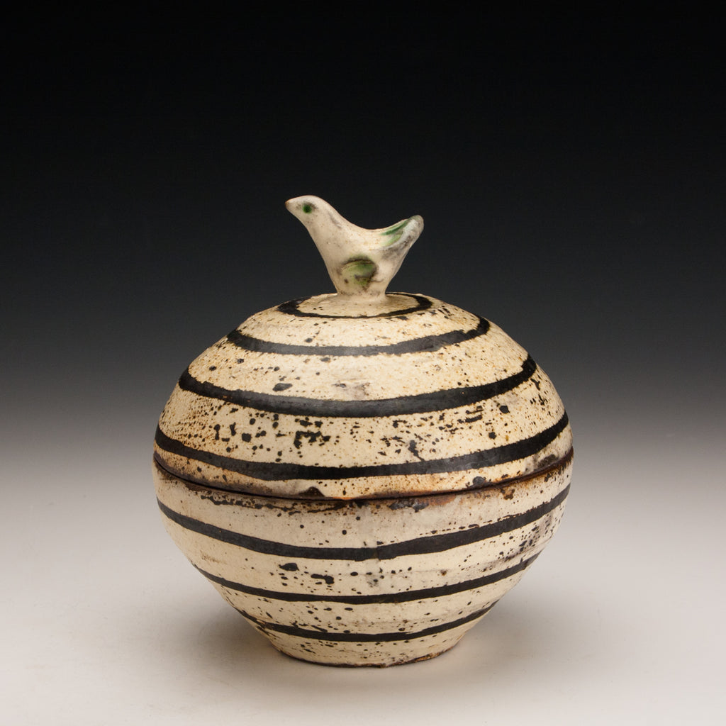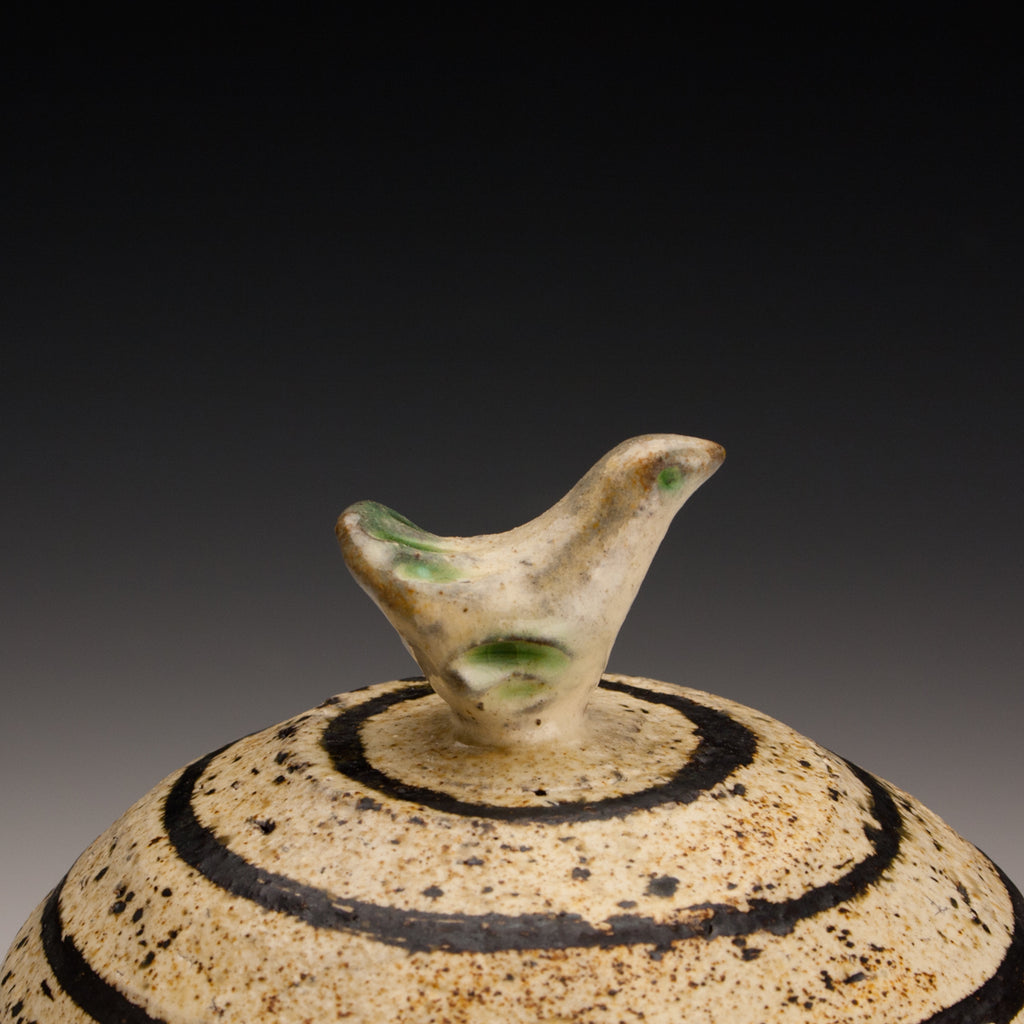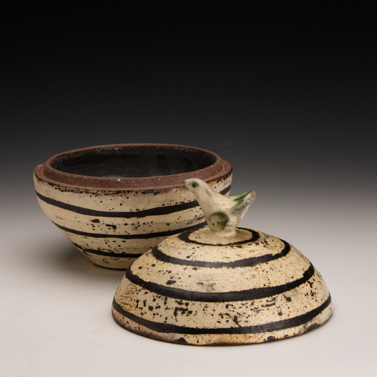Wood fired local red clay. Wax resist and iron deco. 6 x 6.5