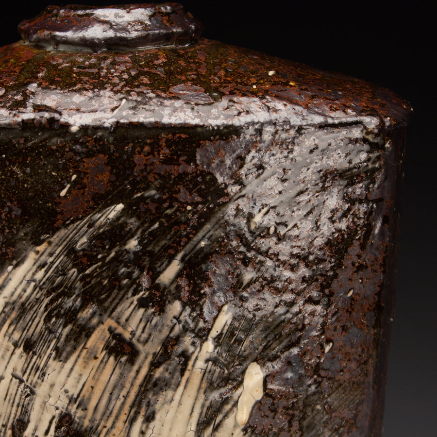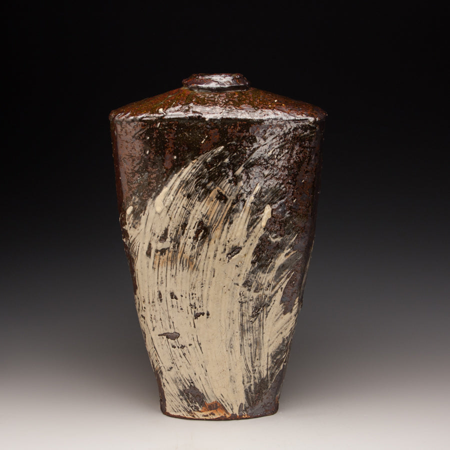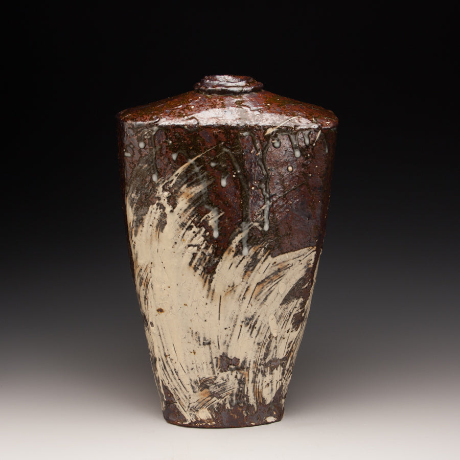 Wood fired local red clay. White slip and clear glaze. 12 x 7 x 4