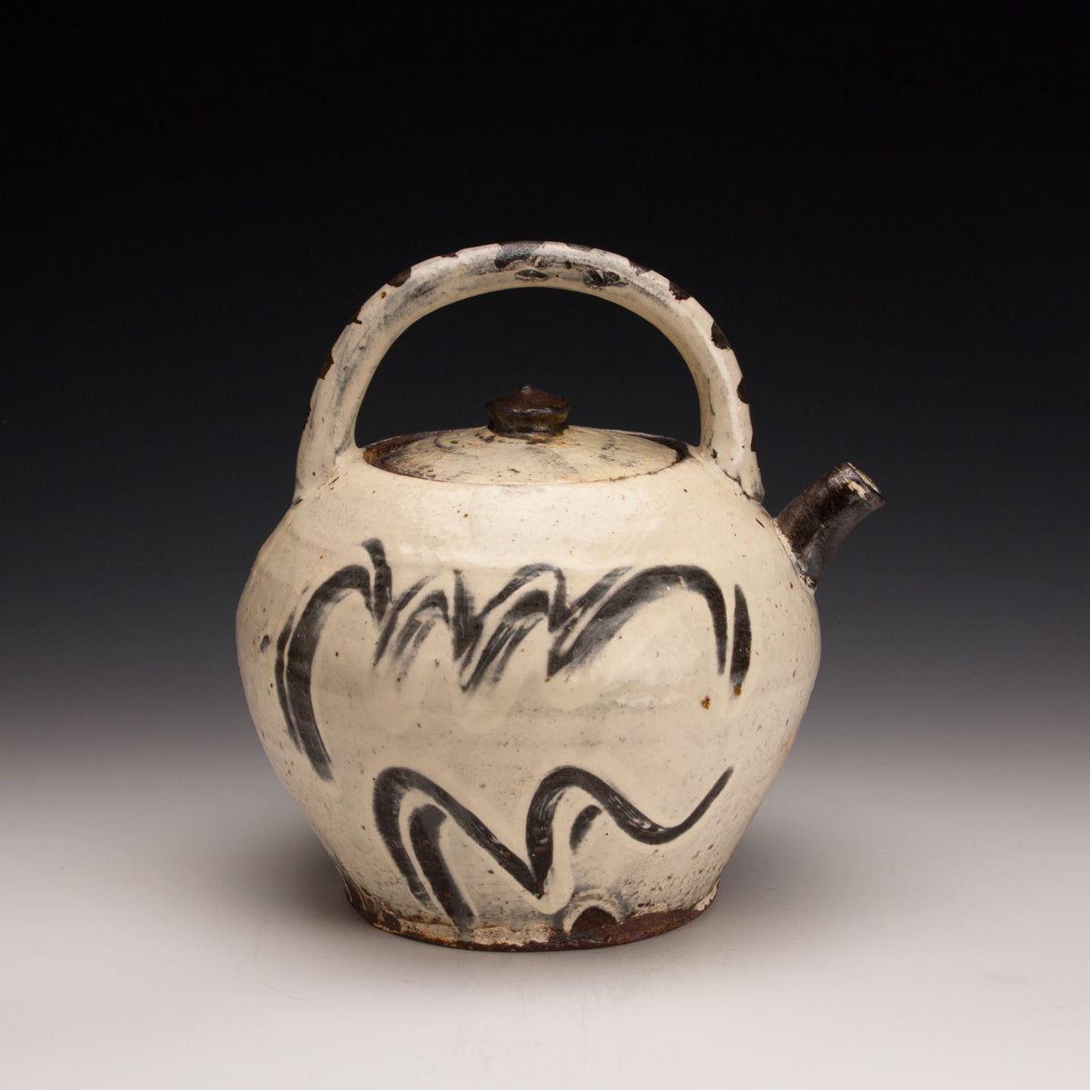 Wood fired local red clay. White slip, clear glaze and iron deco. 8.5 x 7