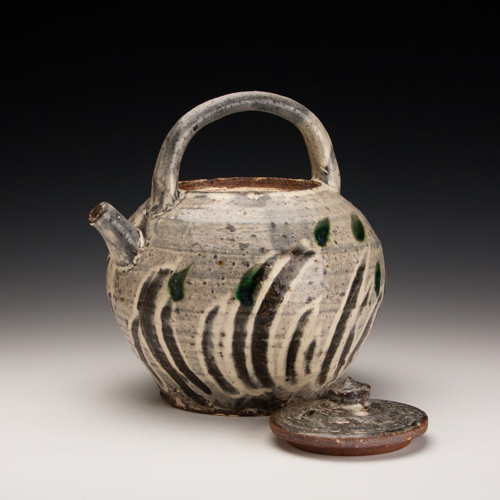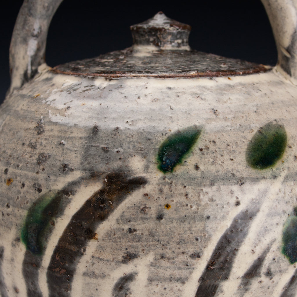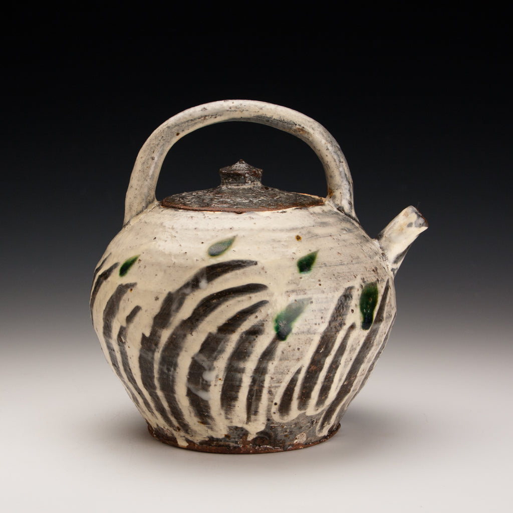 Wood fired local red clay. Fingerwipes, clear glaze, and copper green. 8" x 6.5. x 8"
