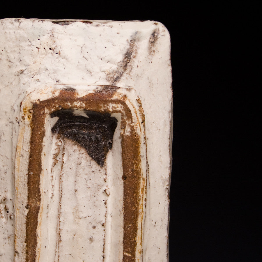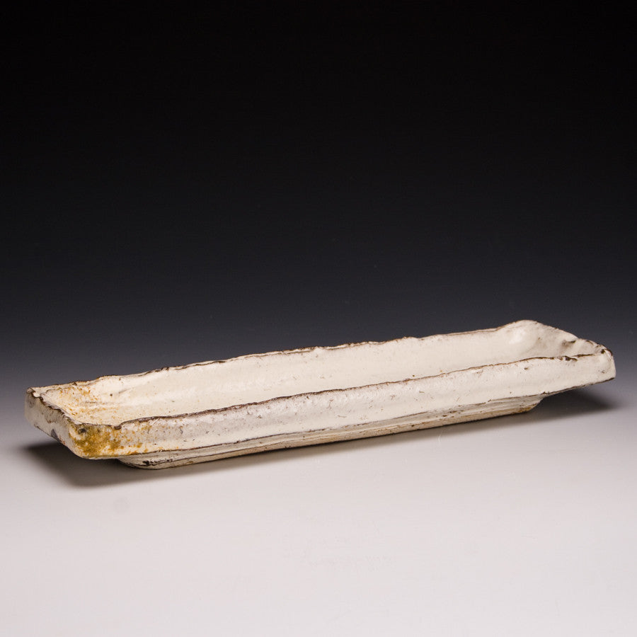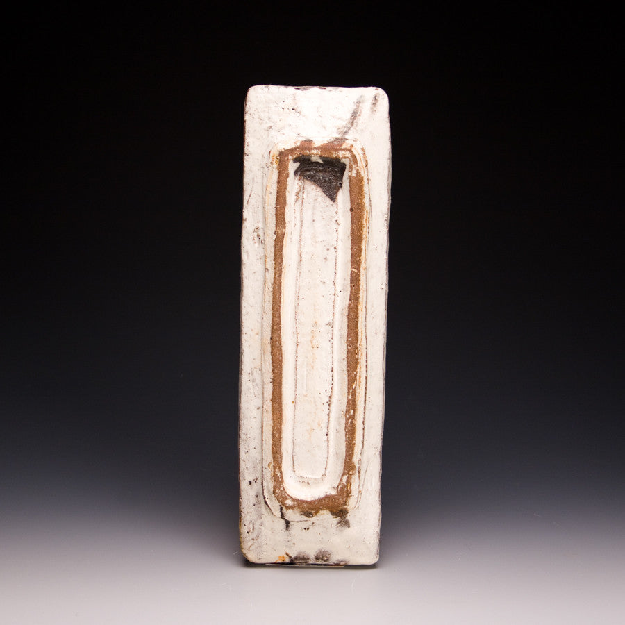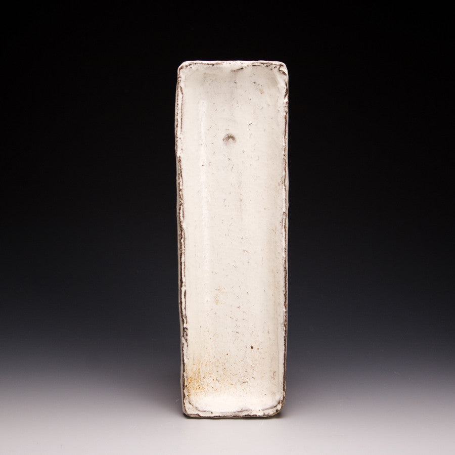 Wood fired local red clay. White slip under clear glaze. 12.25 x 4 x 1.25