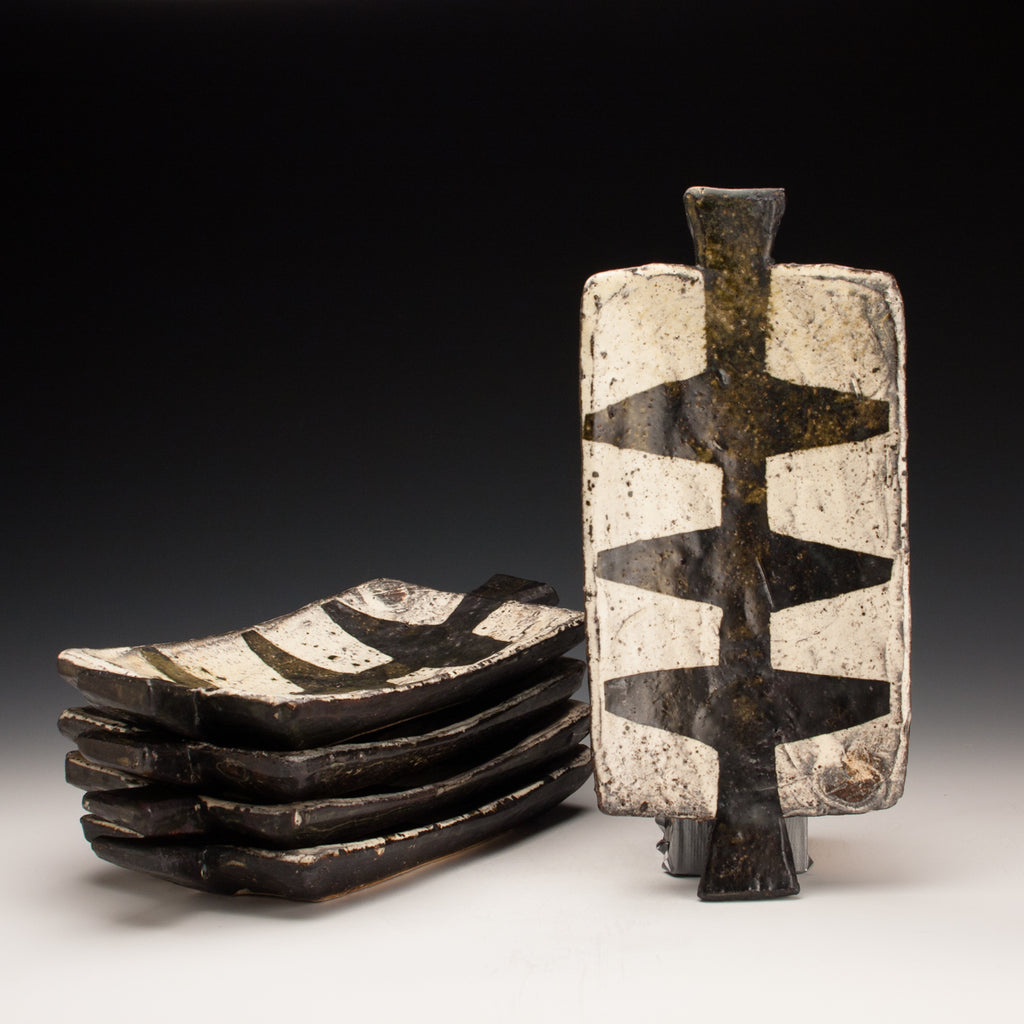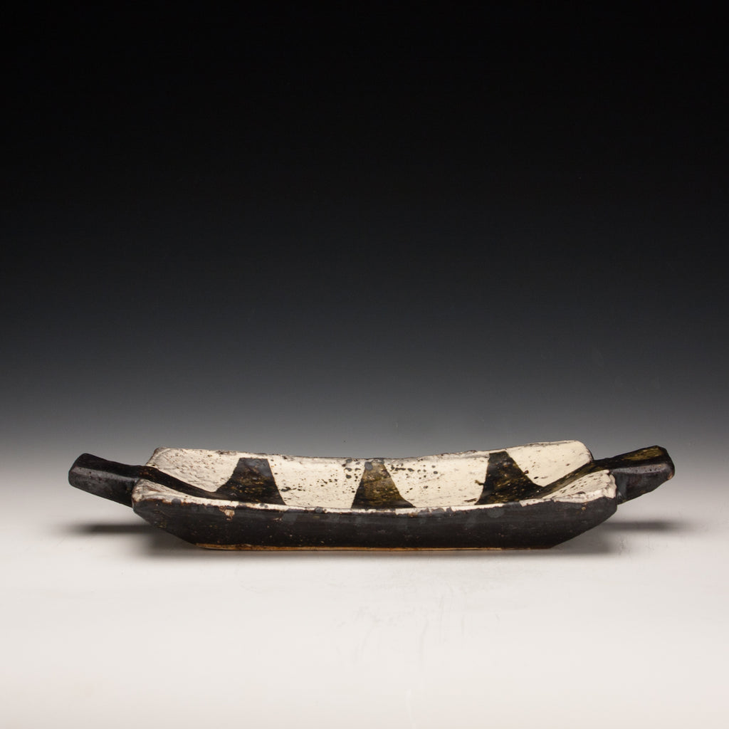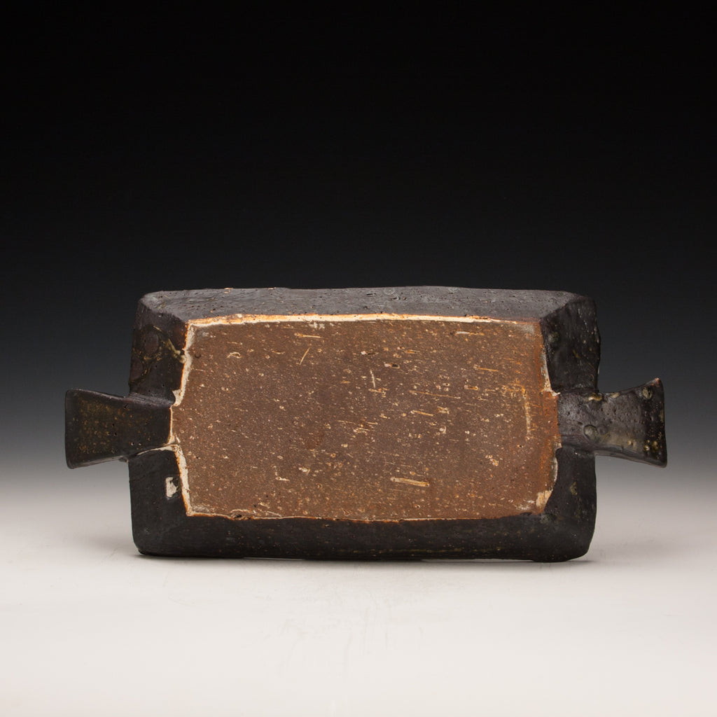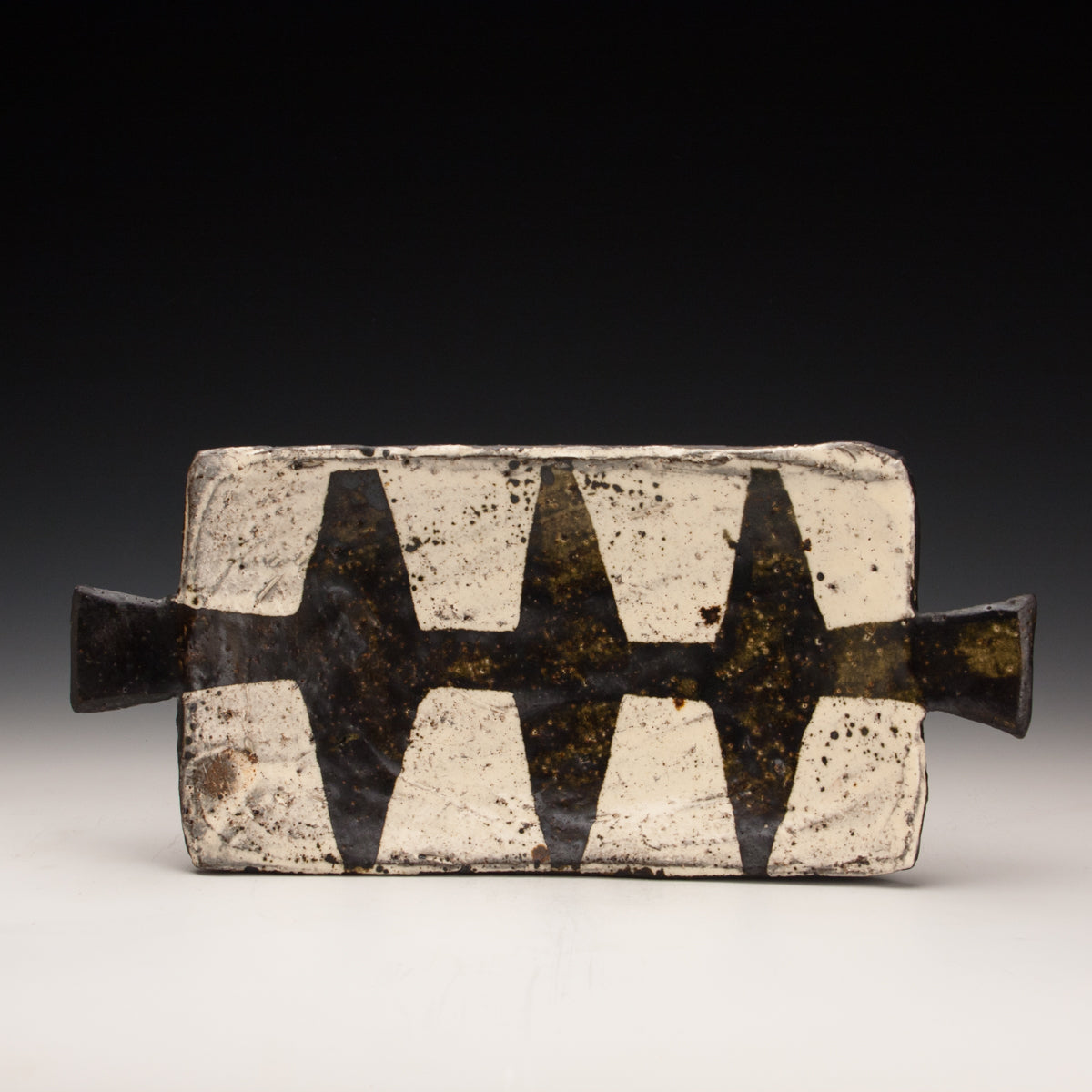 Wood fired local red clay. Wax resist and iron deco. 1.75 x 11.5 x 5.25