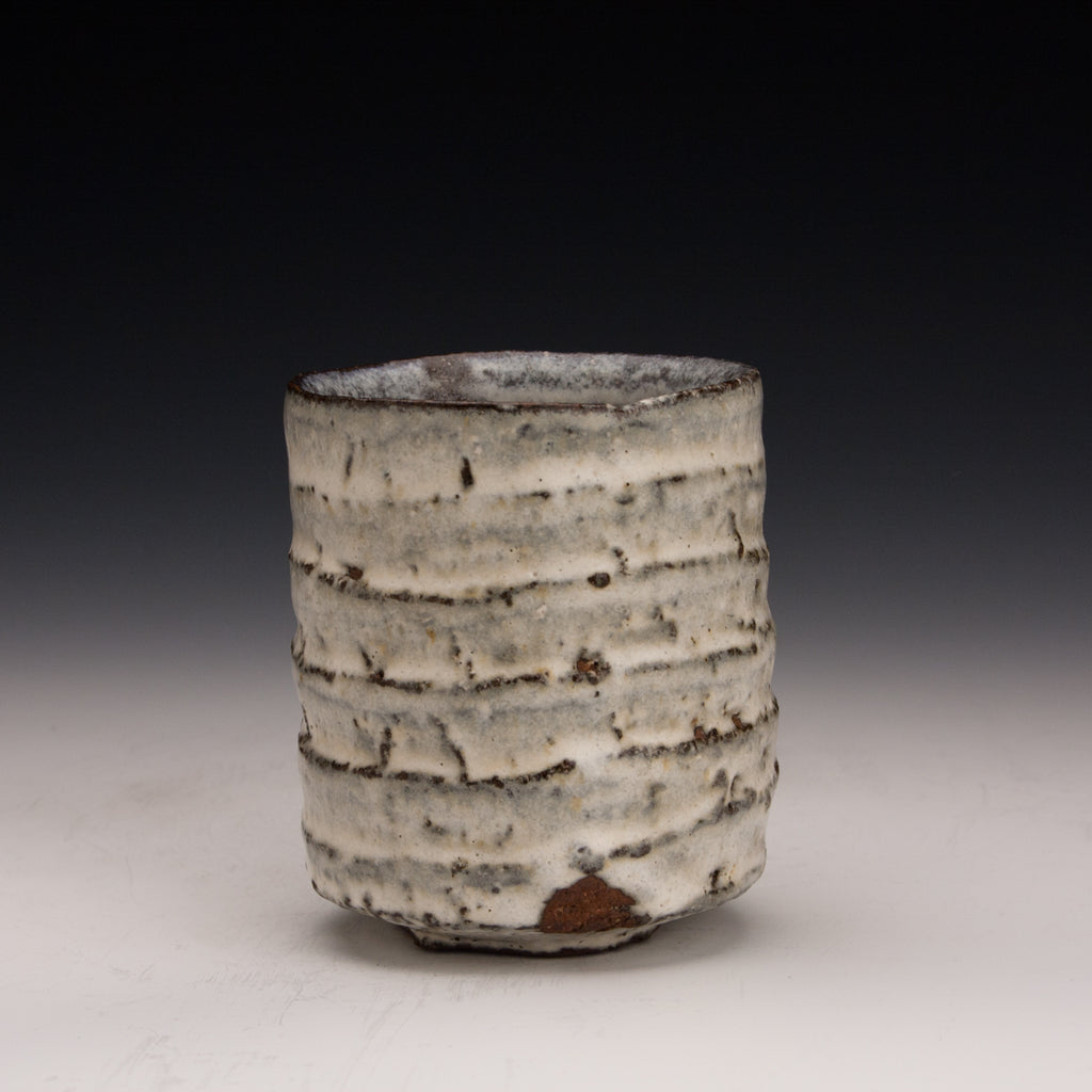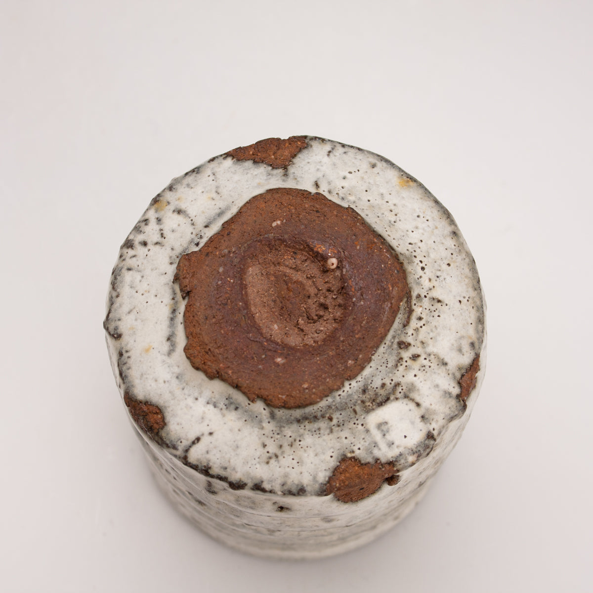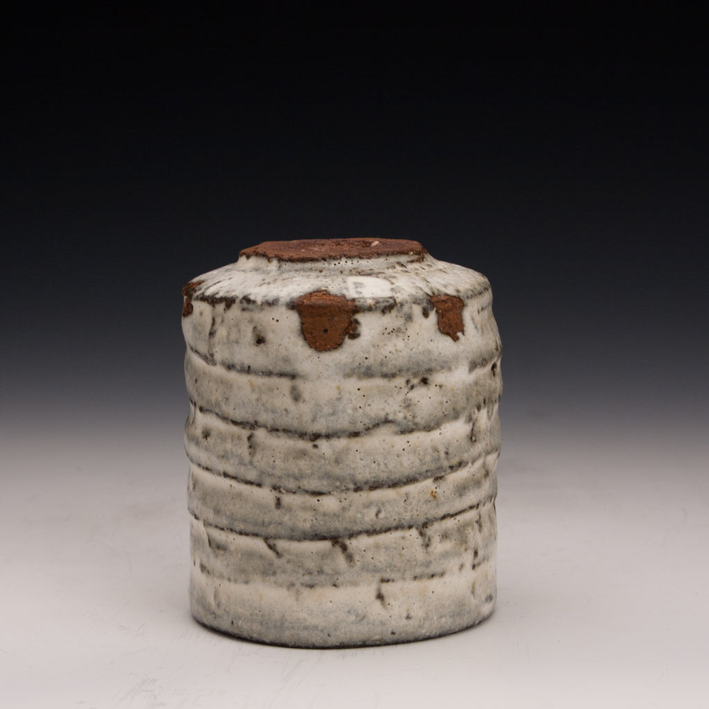 Wood fired local red clay. Carved clay and nuka glaze. 3.25 x 3.75