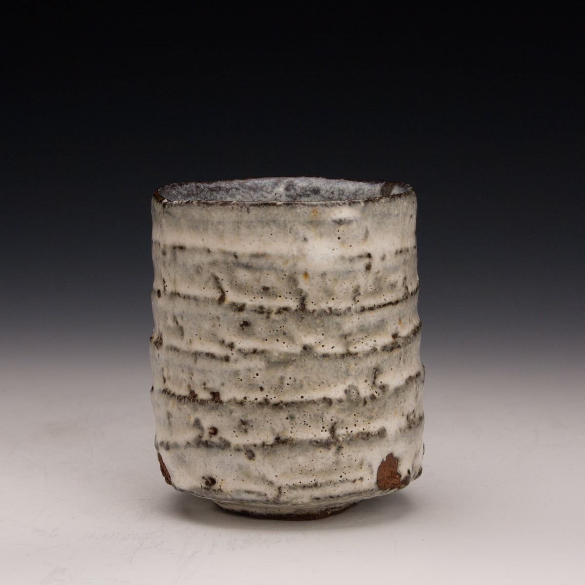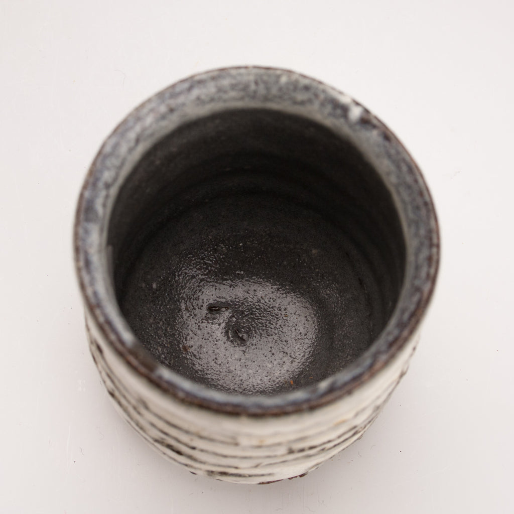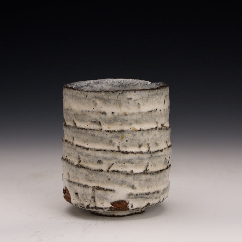 Wood fired local red clay. Carved clay and nuka glaze. 3.25 x 3.75