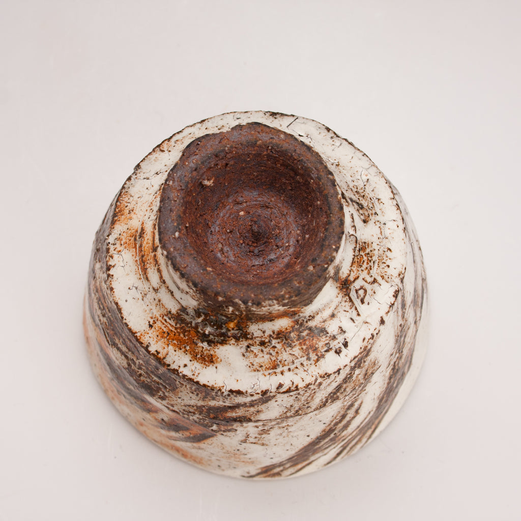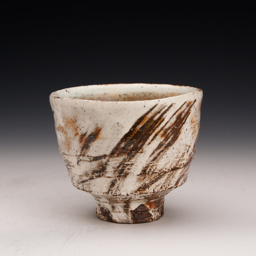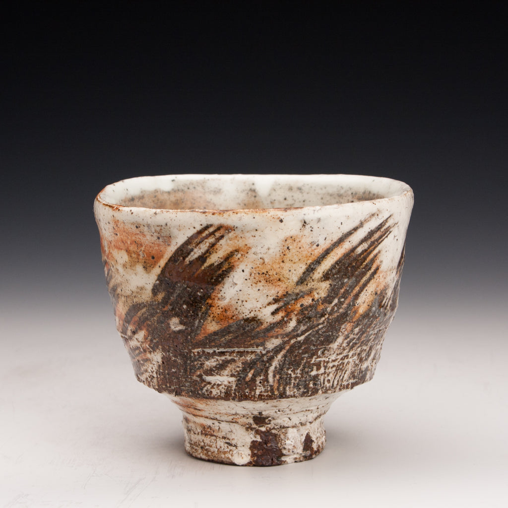Wood fired local red clay. White slip sgraffito, clear glaze. 3.5 x 4