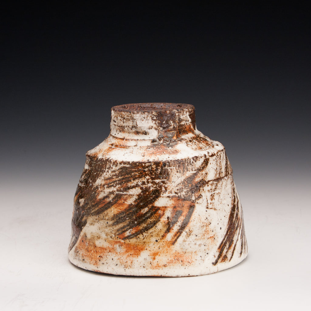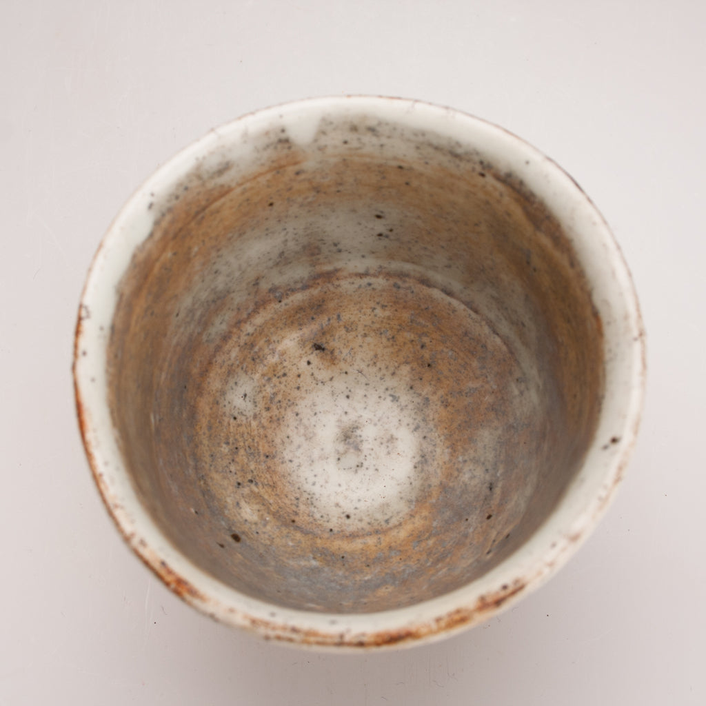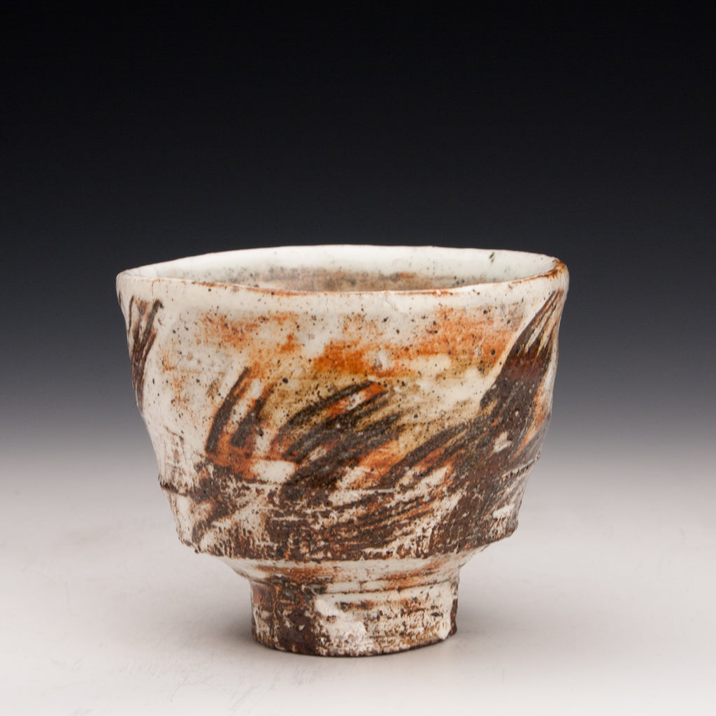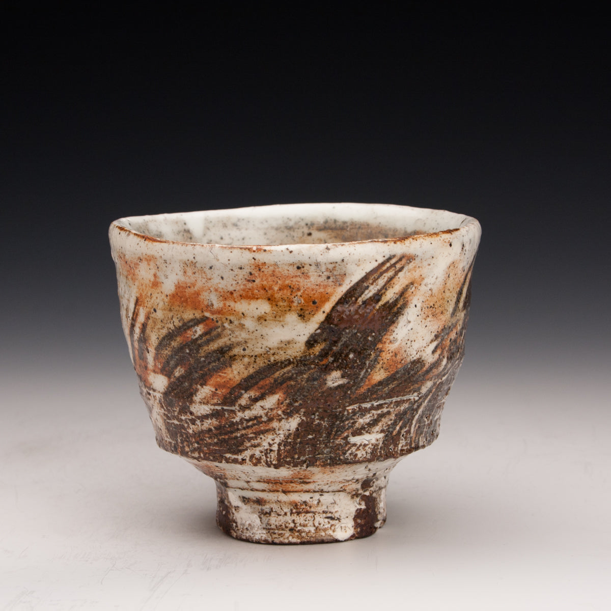Wood fired local red clay. White slip sgraffito, clear glaze. 3.5 x 4