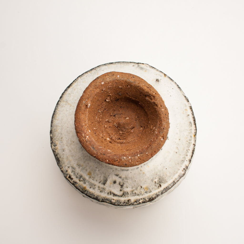 Wood fired local red clay. Carved Clay and Nuka Glaze. 3 x 3.5