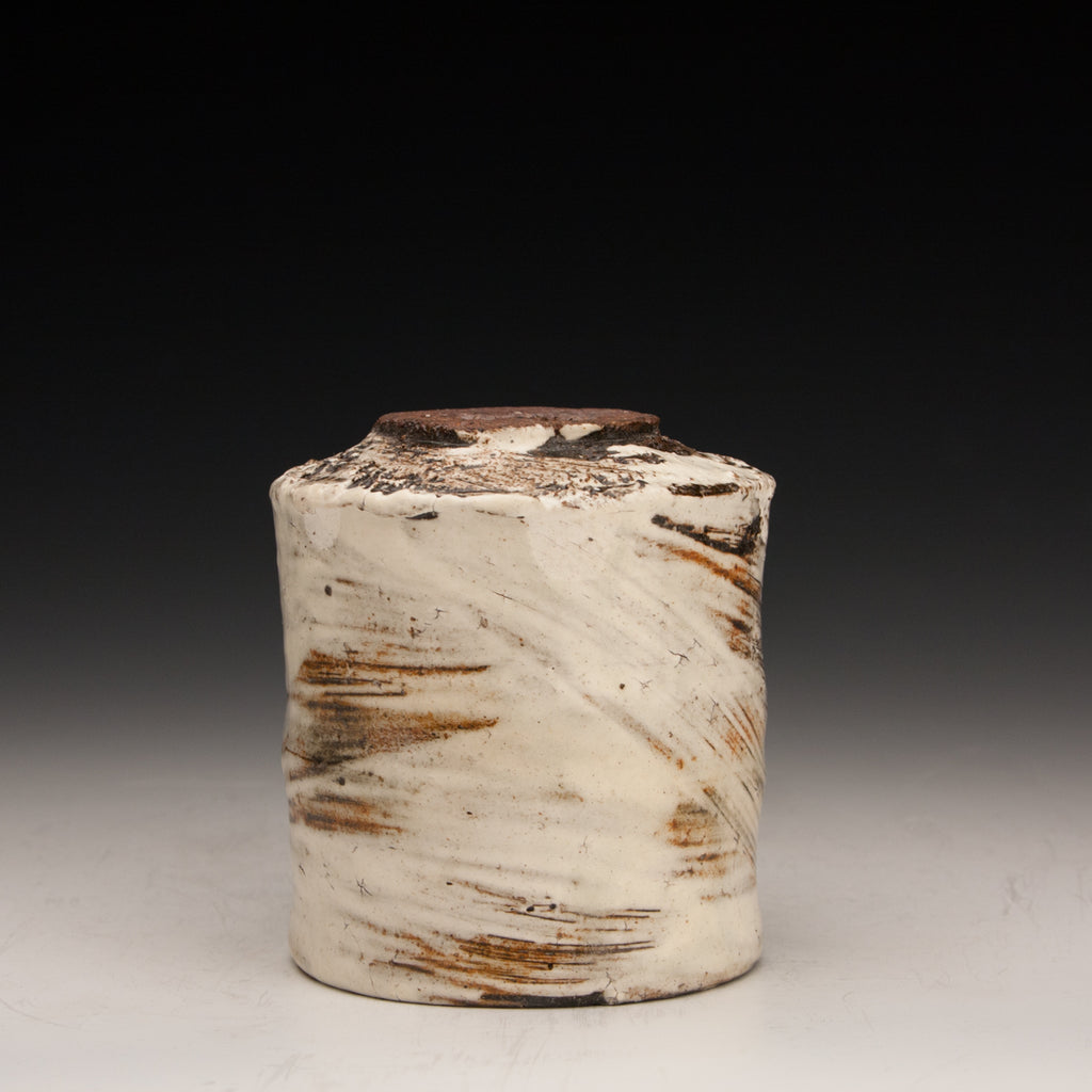 Wood fired local red clay. Hakame slip and clear glaze. 3 x 3.5