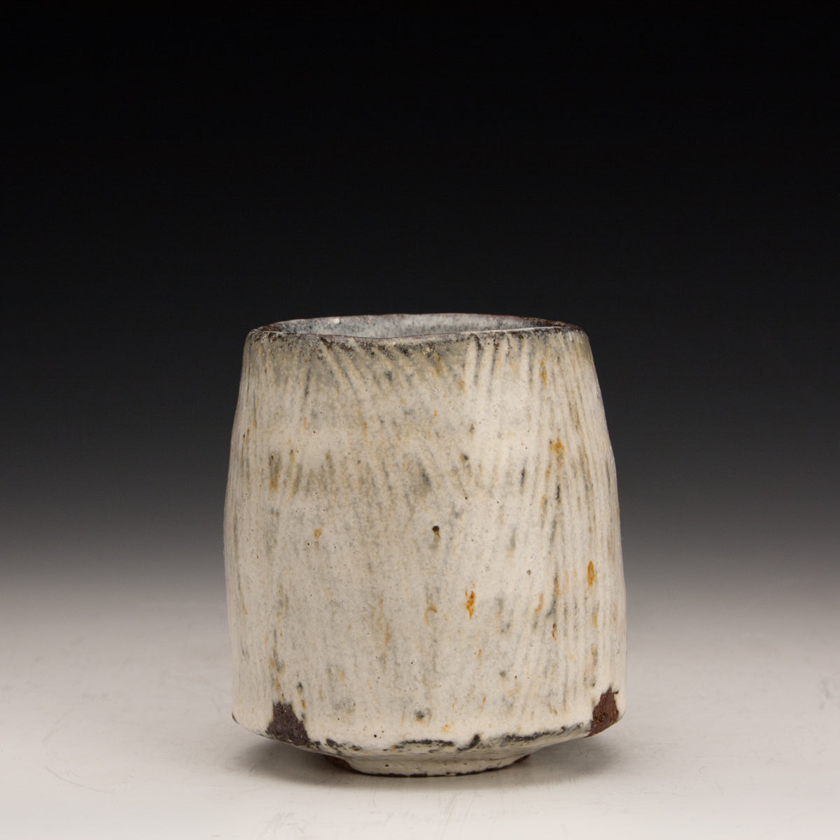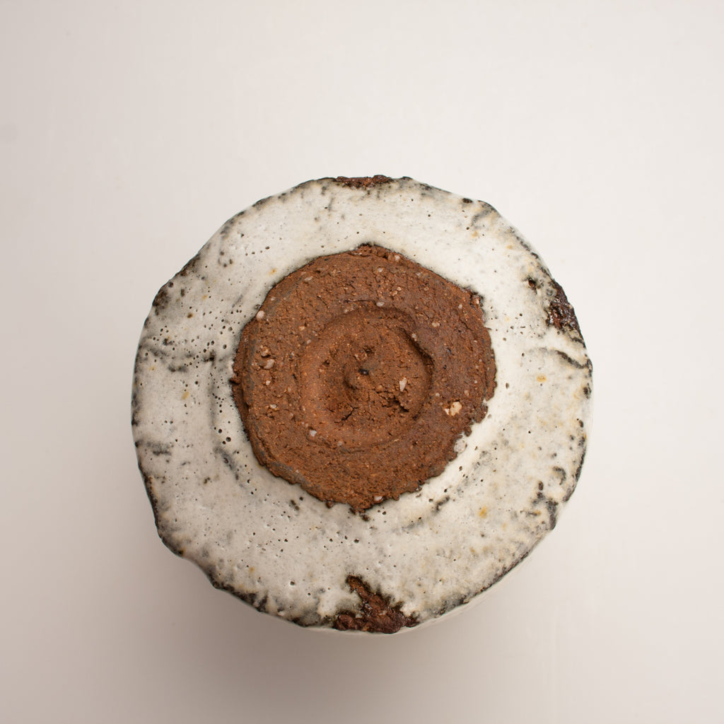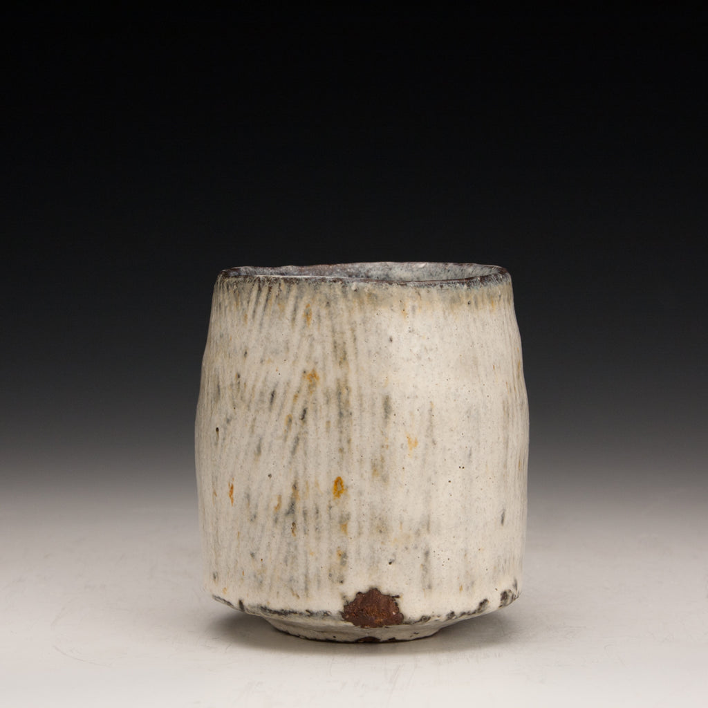 Wood fired local red clay. Textured Clay and Nuka Glaze. 3 x 3.5