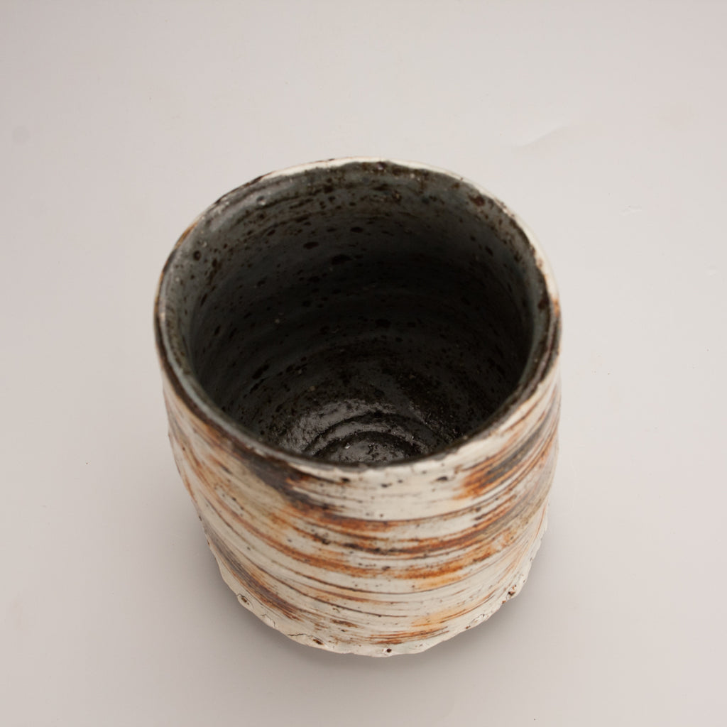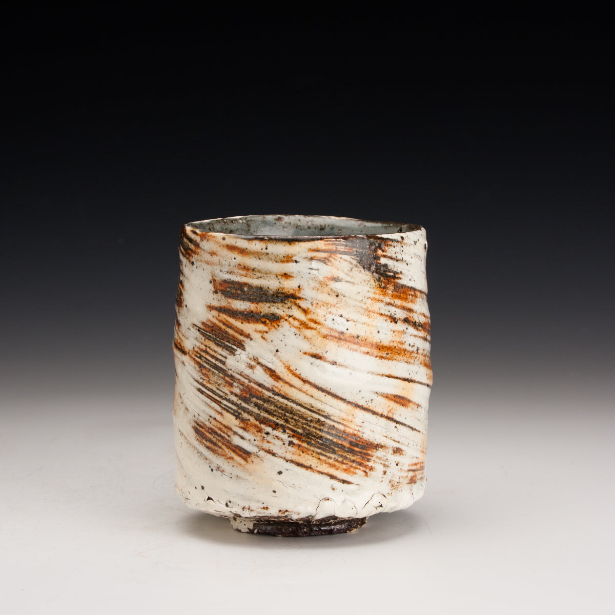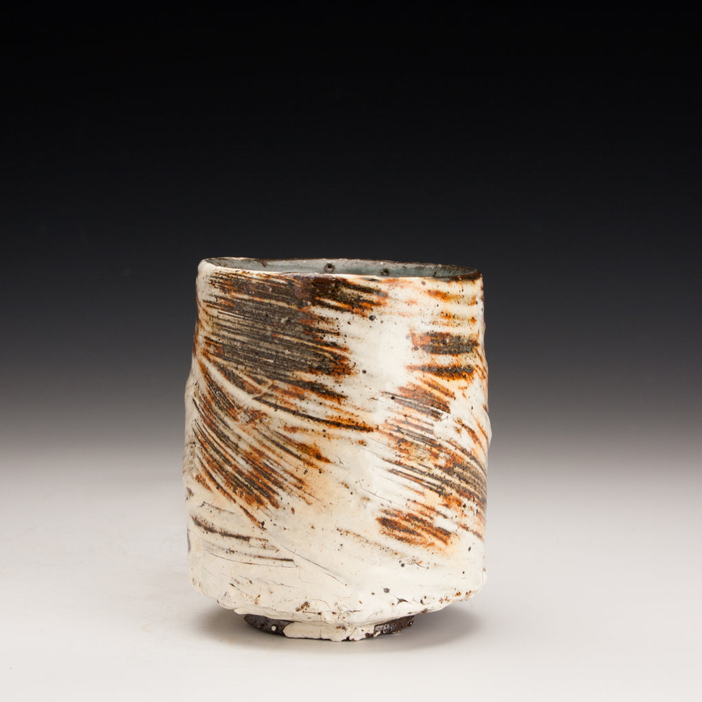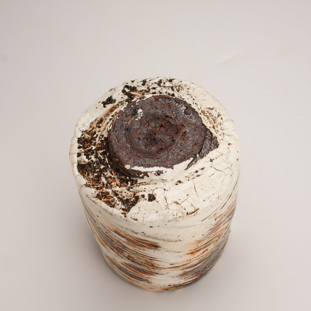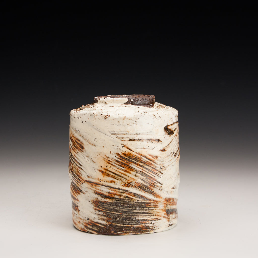 Wood fired local red clay. Hakame slip and clear glaze. 3 x 3.75