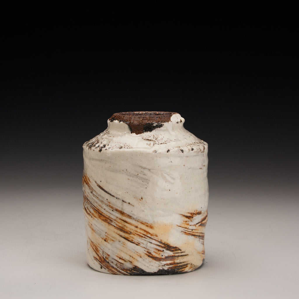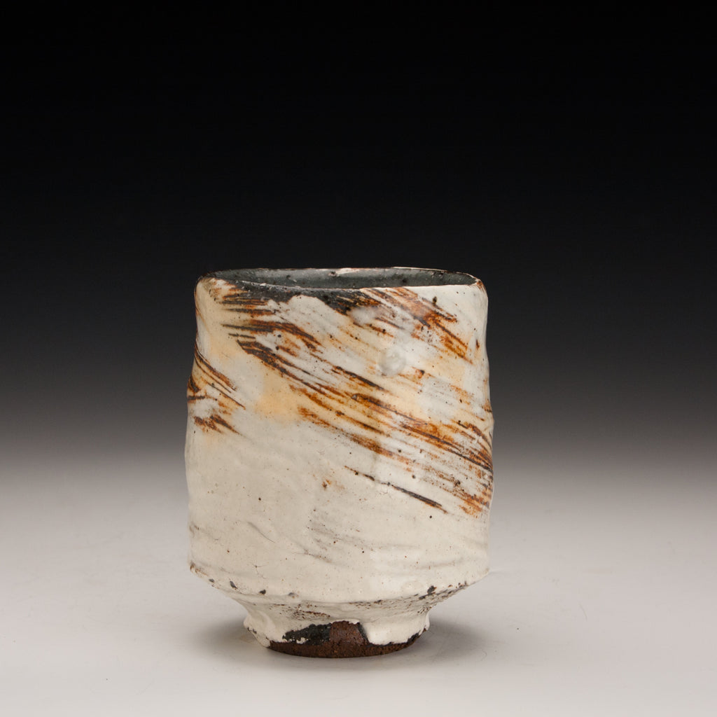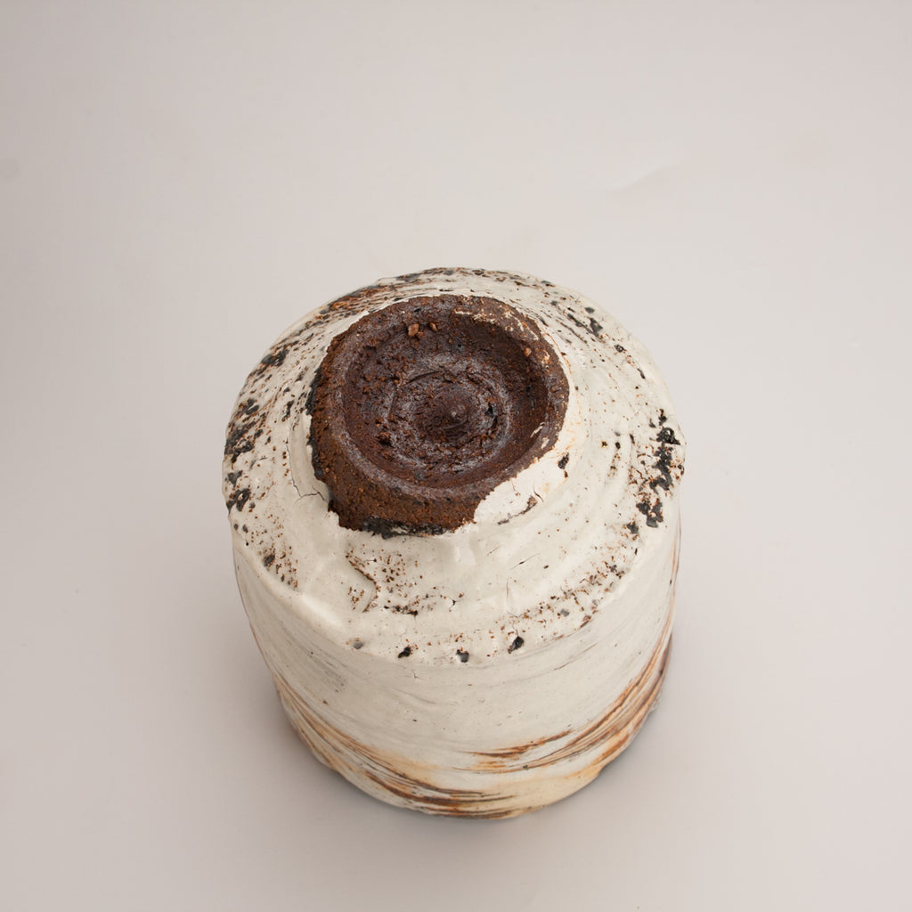 Wood fired local red clay. Hakame slip and clear glaze.  3 x 3.75