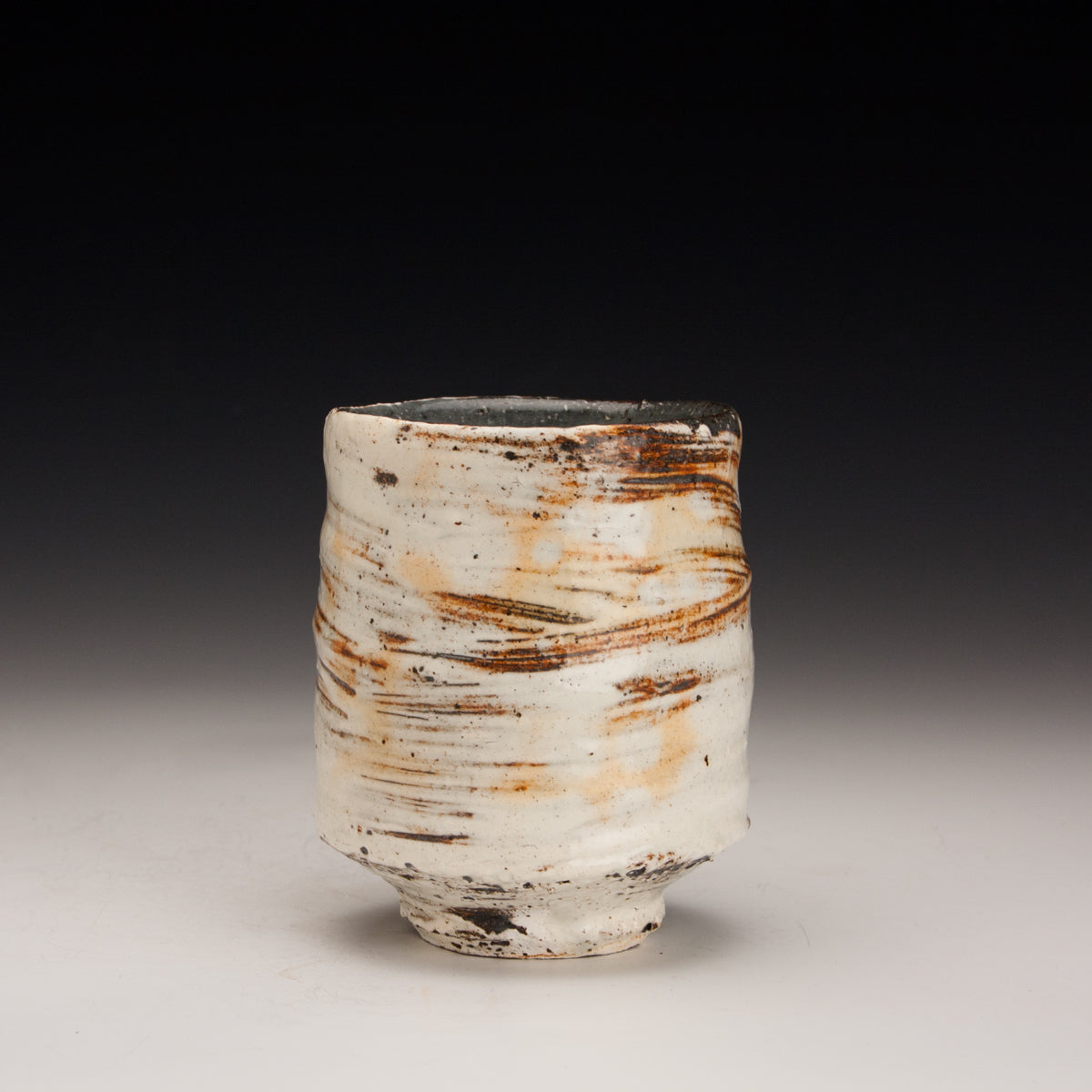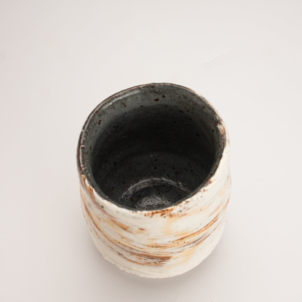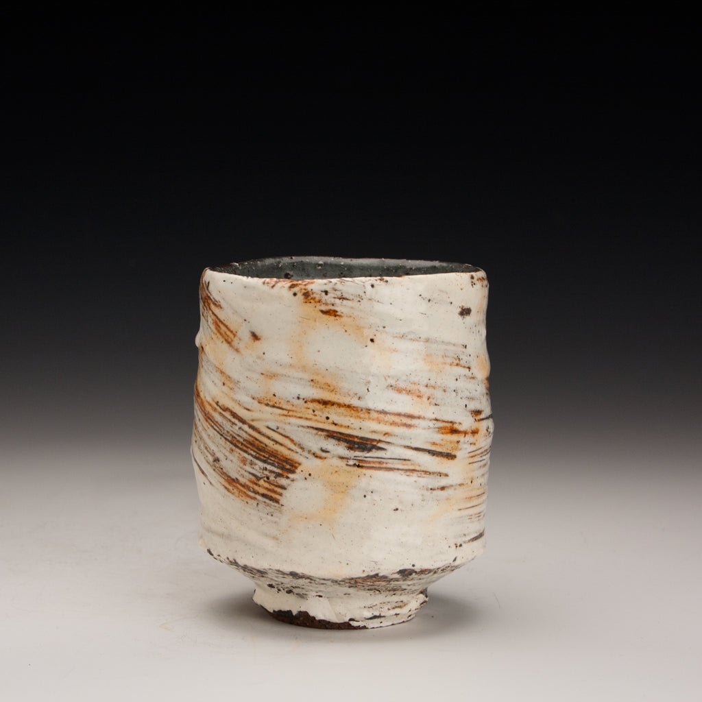 Wood fired local red clay. Hakame slip and clear glaze.  3 x 3.75