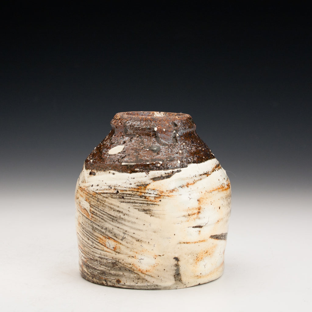 Wood fired local red clay. Brushed slip and clear glaze. 3.5 x 3.25