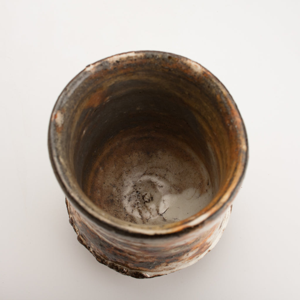 Wood fired local red clay. Brushed slip and clear glaze. 4 x 3.25