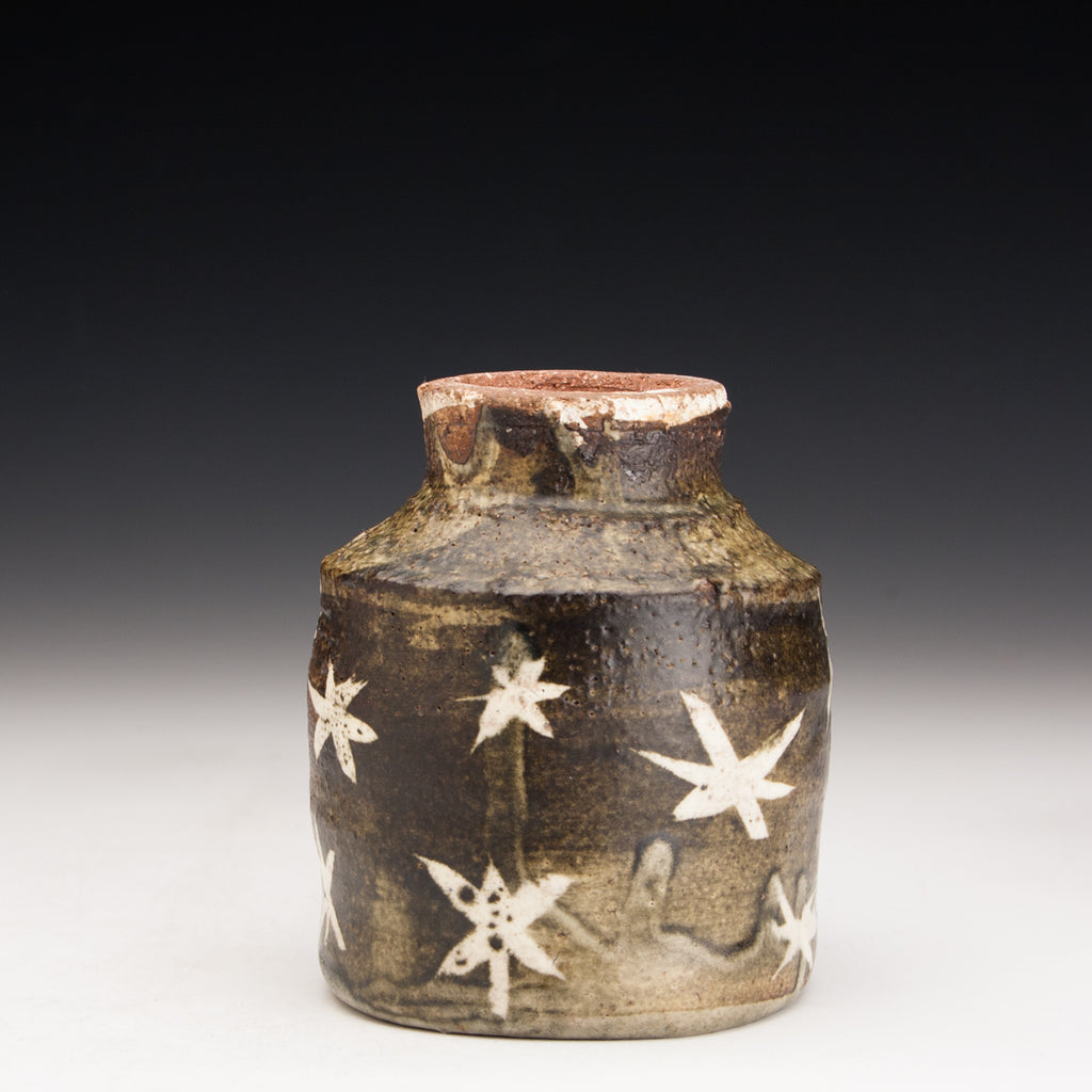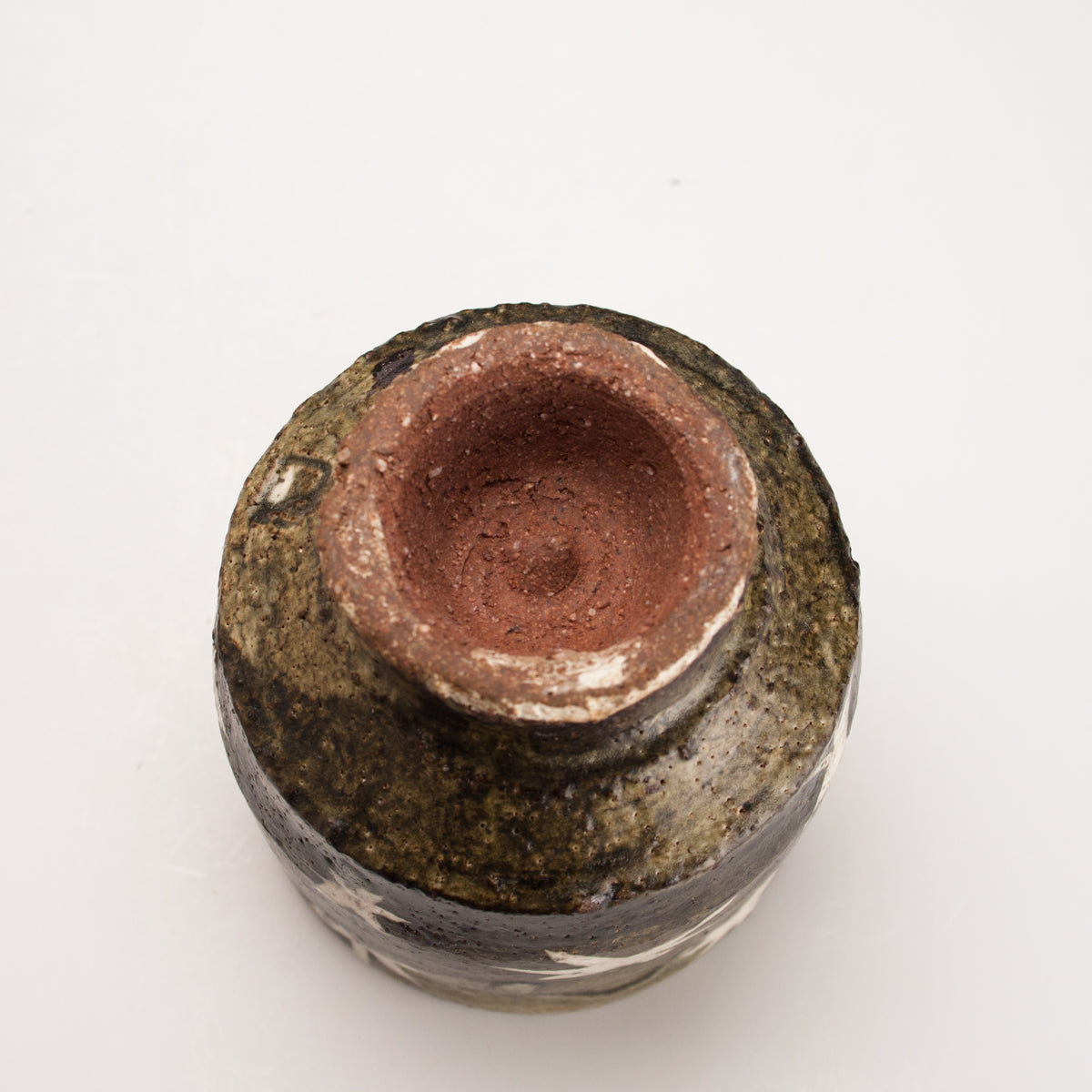 Wood fired local red clay. Wax resist and iron wash. 3.75 x 3.25