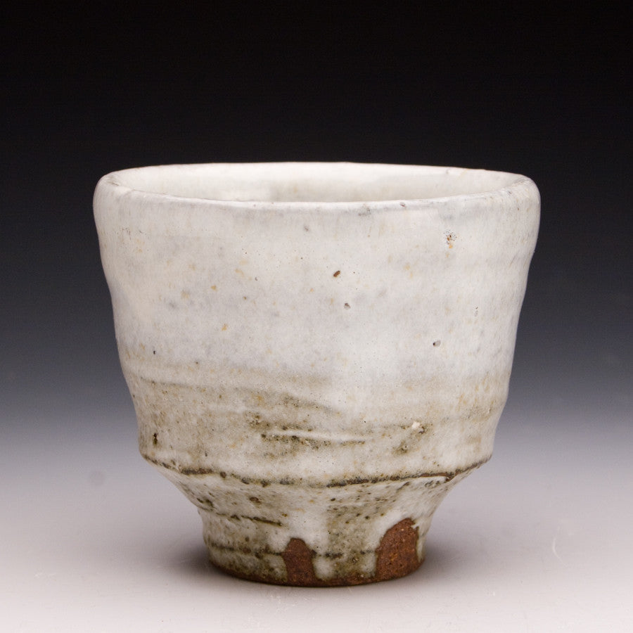Wood fired local red clay. White slip under nuka glaze. 3.25 x 3.75