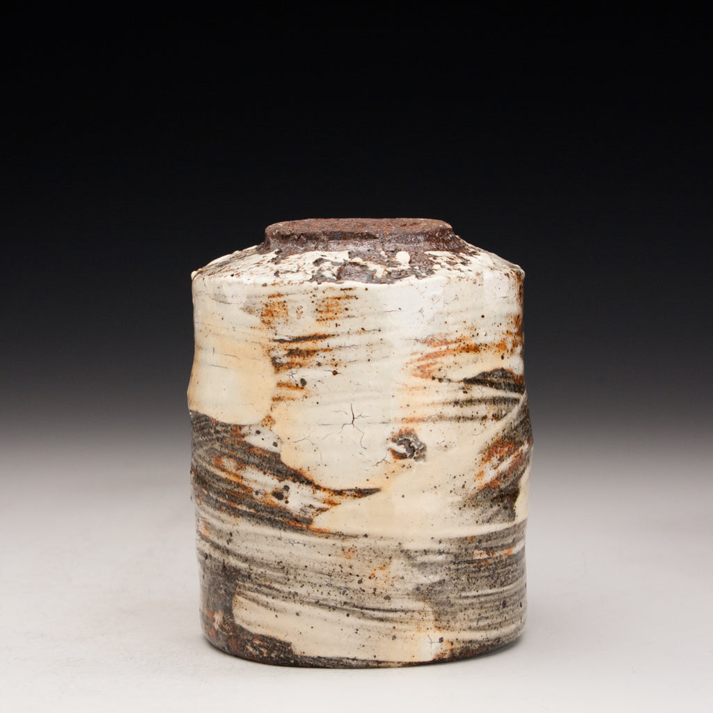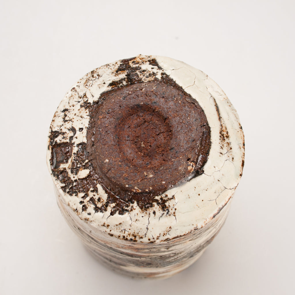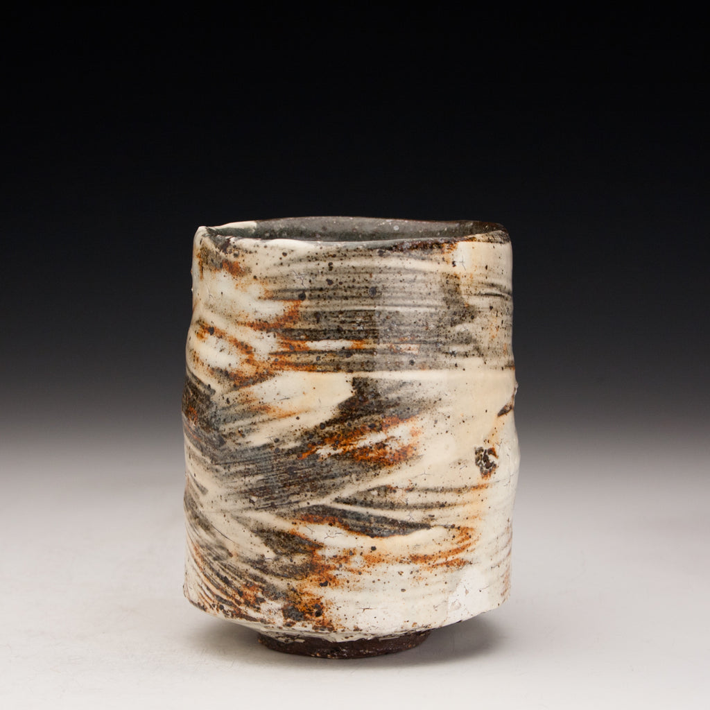 Wood fired local red clay. Brushed slip and clear glaze. 3.25 x 4.25