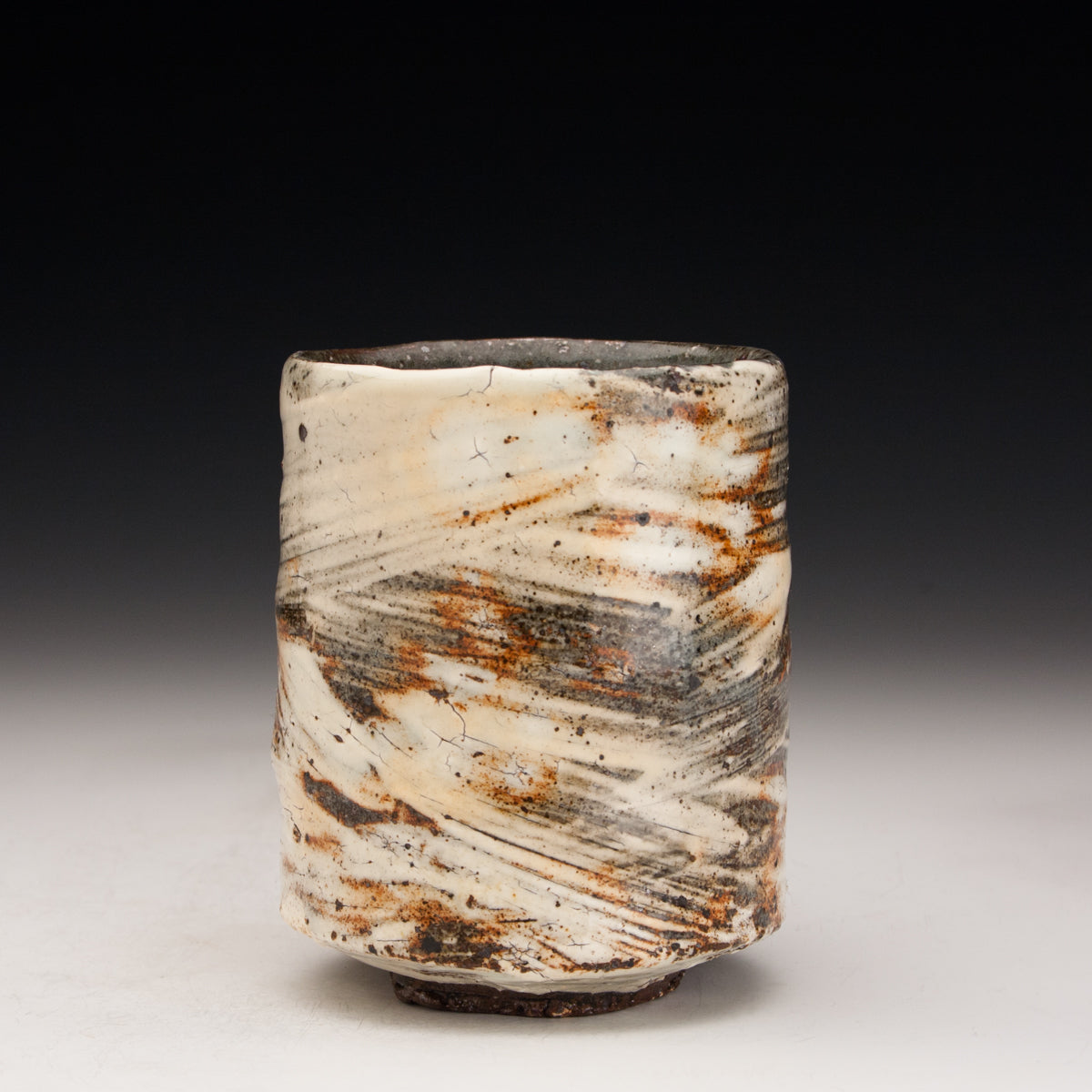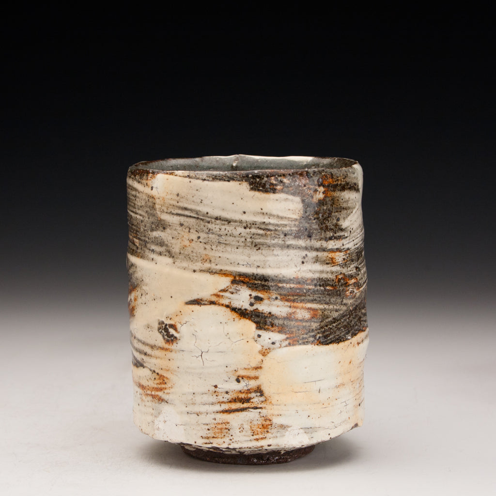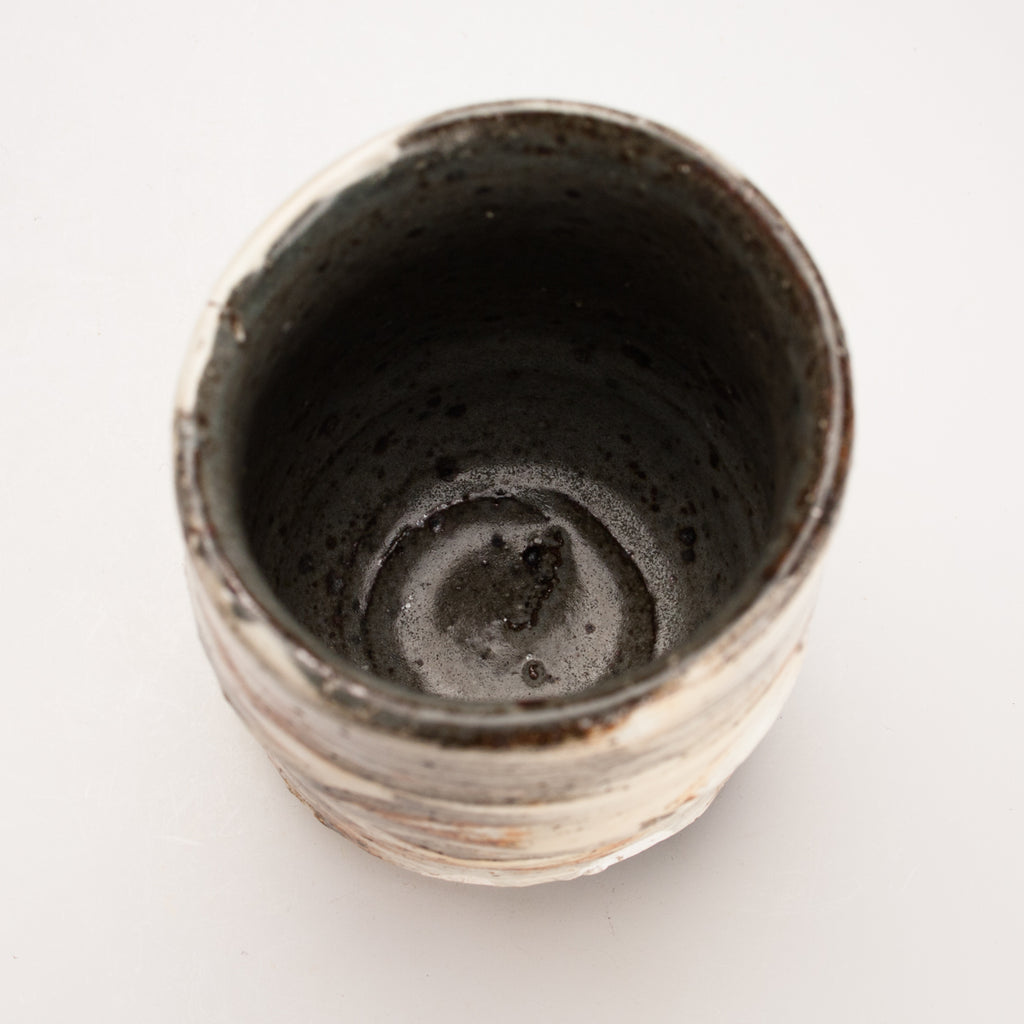 Wood fired local red clay. Brushed slip and clear glaze. 3.25 x 4.25
