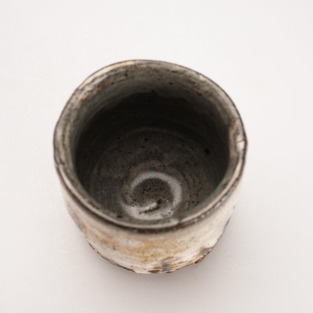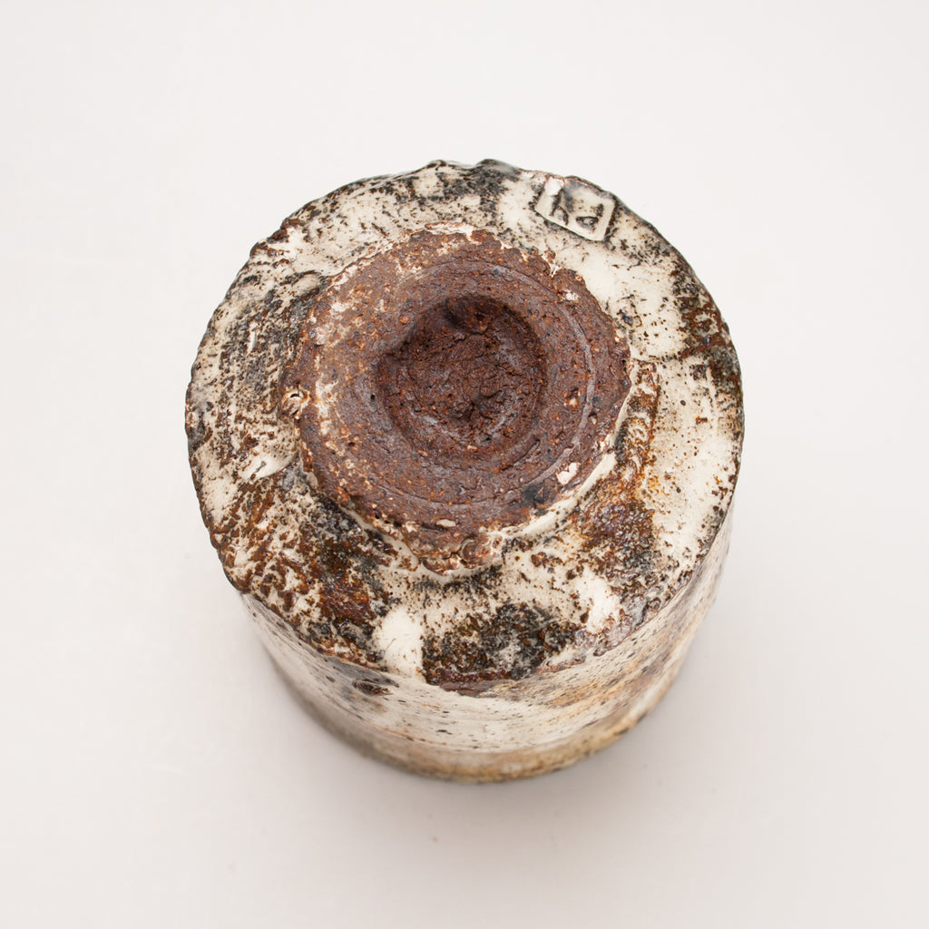 Wood fired local red clay. White slip and clear glaze. 3.75 x 3.25