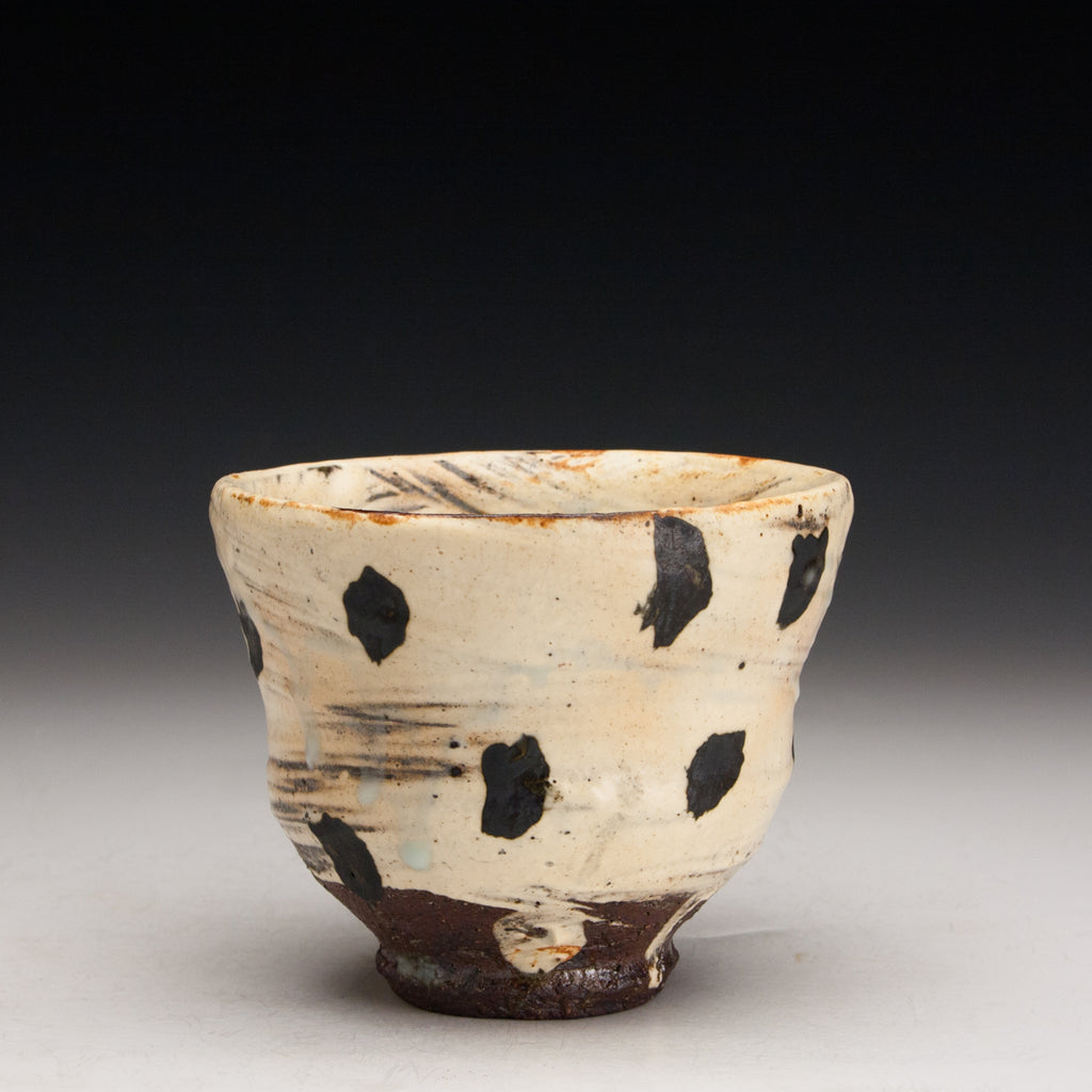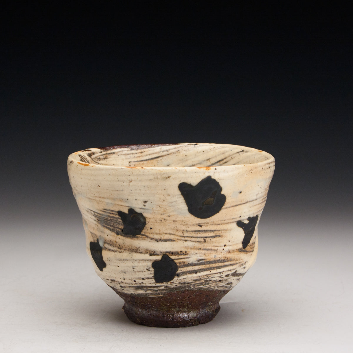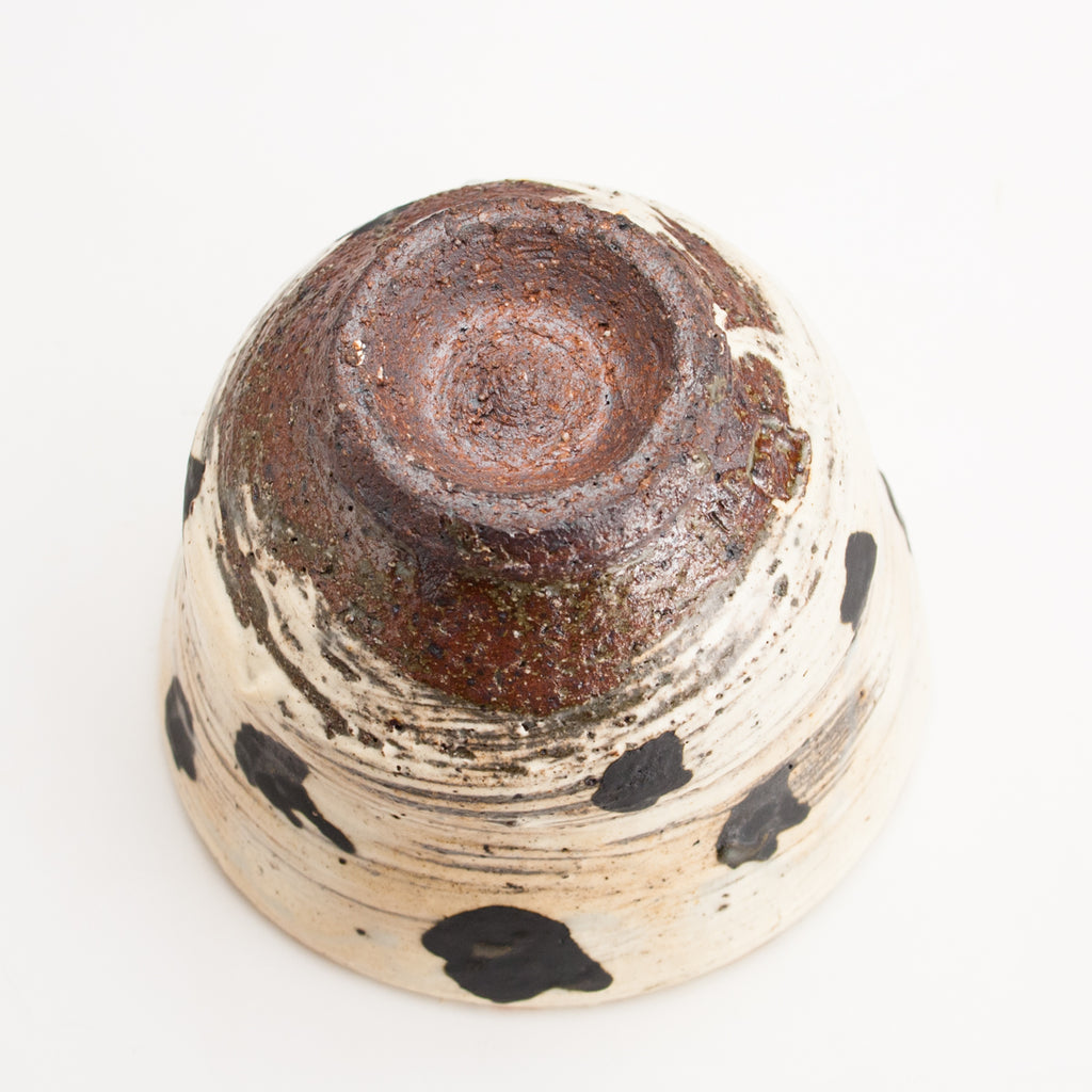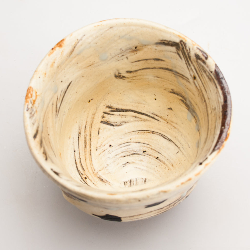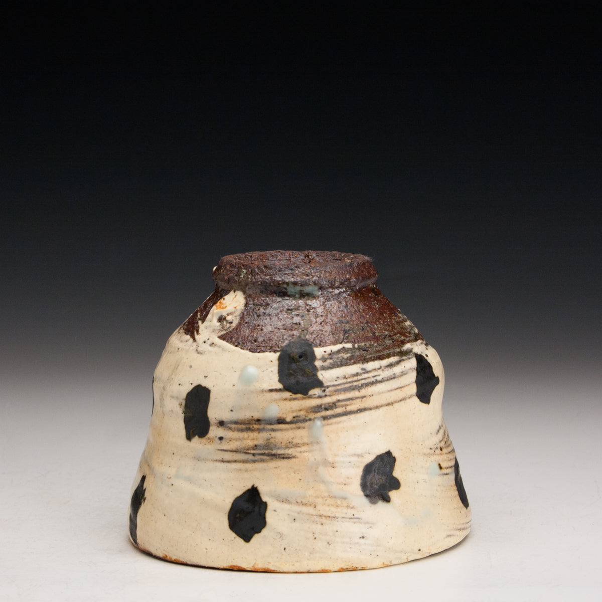 Local red clay. Brushed slip and clear glaze with black deco. 4 x 3