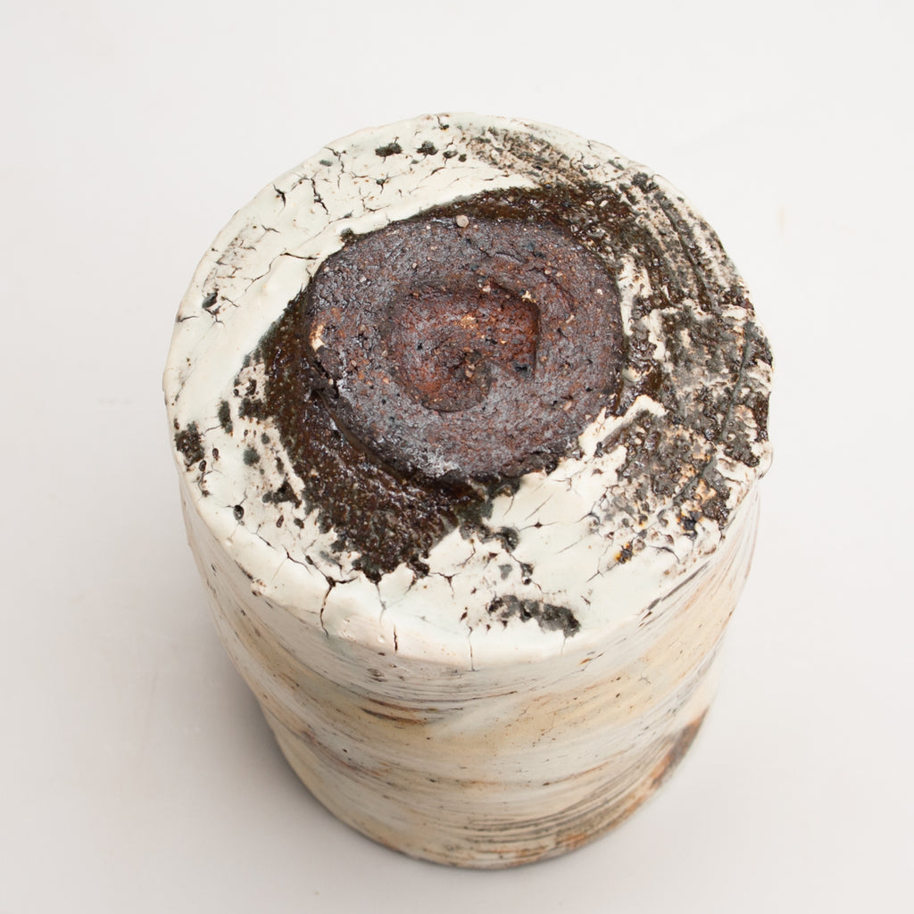Local red clay. Brushed slip and clear glaze. 3.25 x 3.5