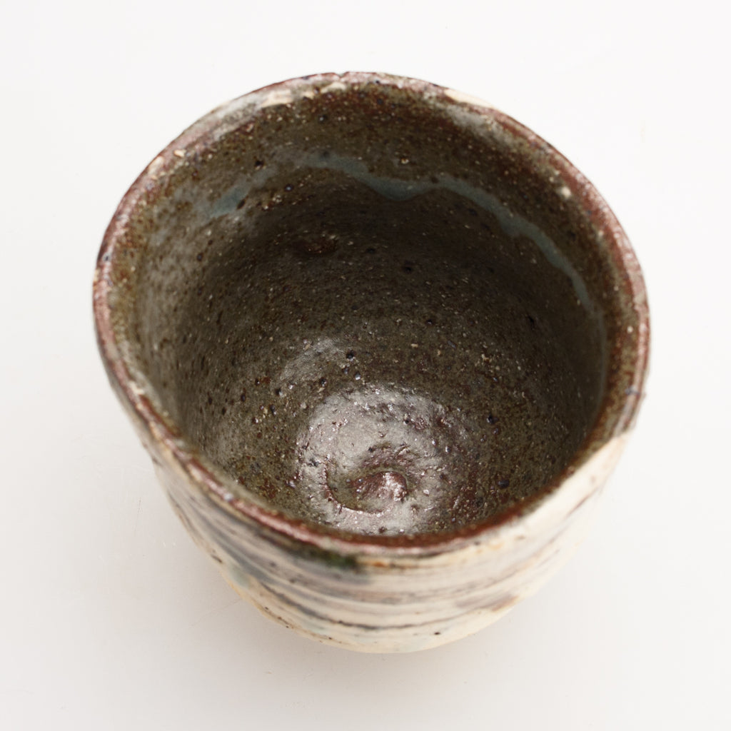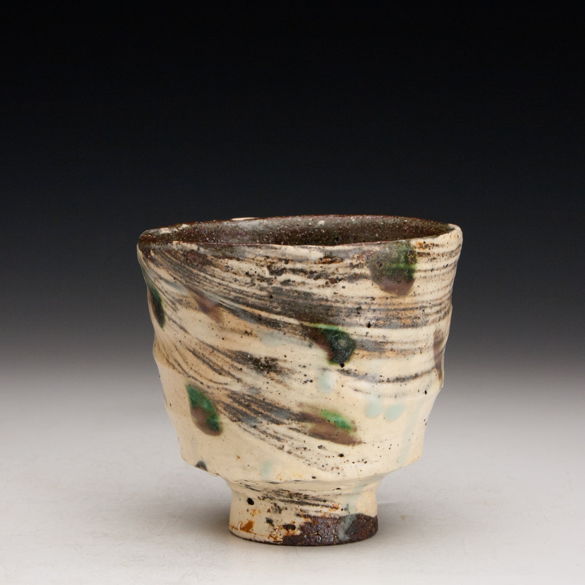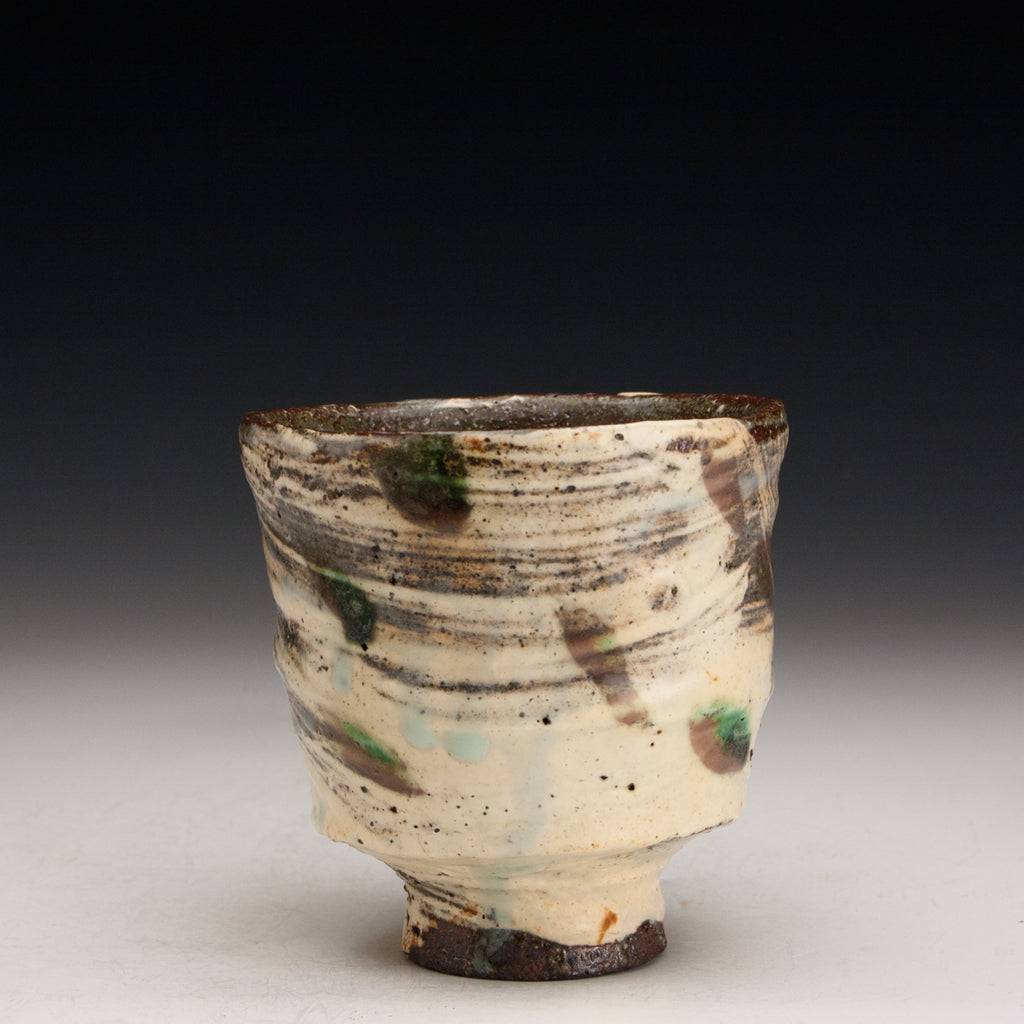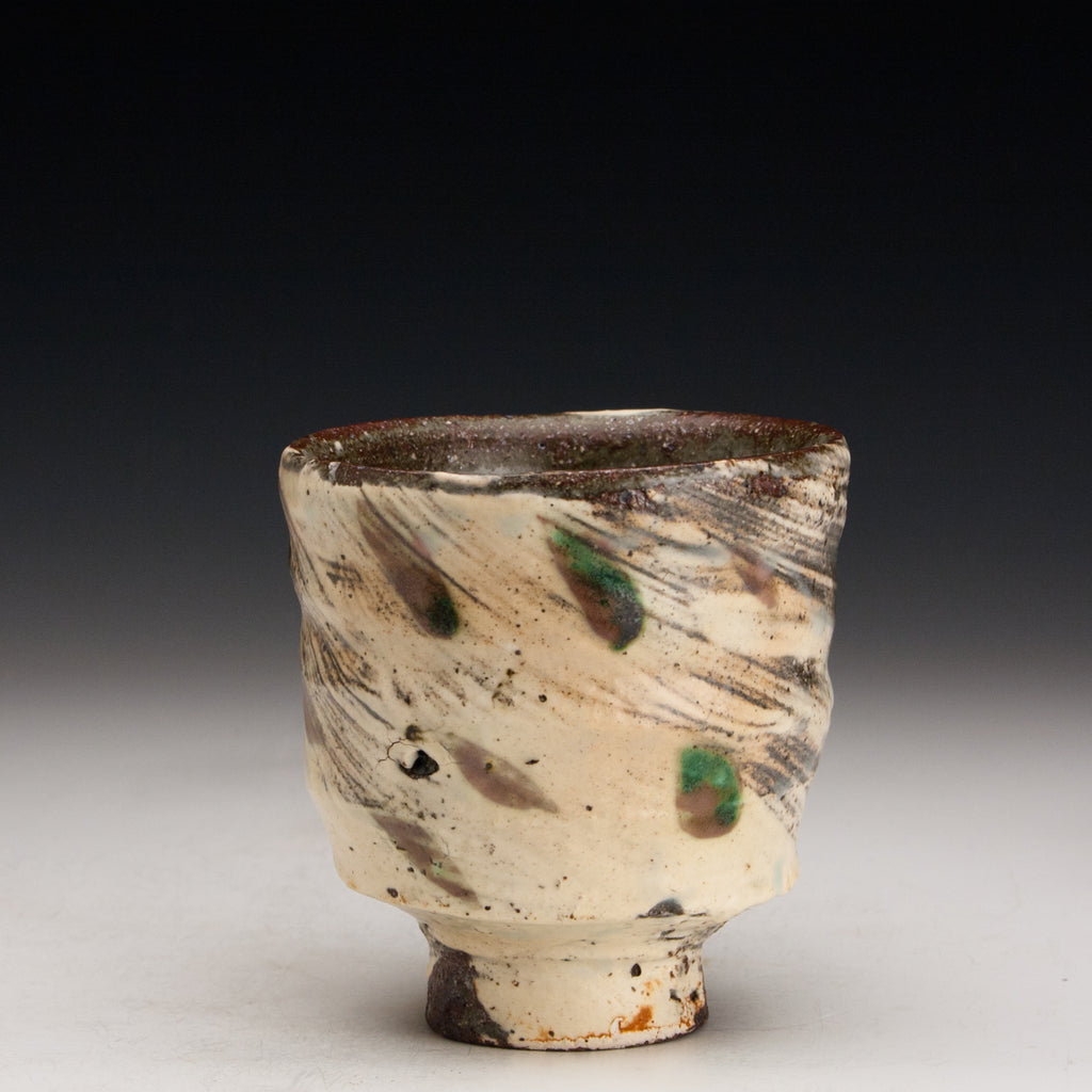 Local red clay. Brushed slip and clear glaze with copper green. 3.75 x 3.5