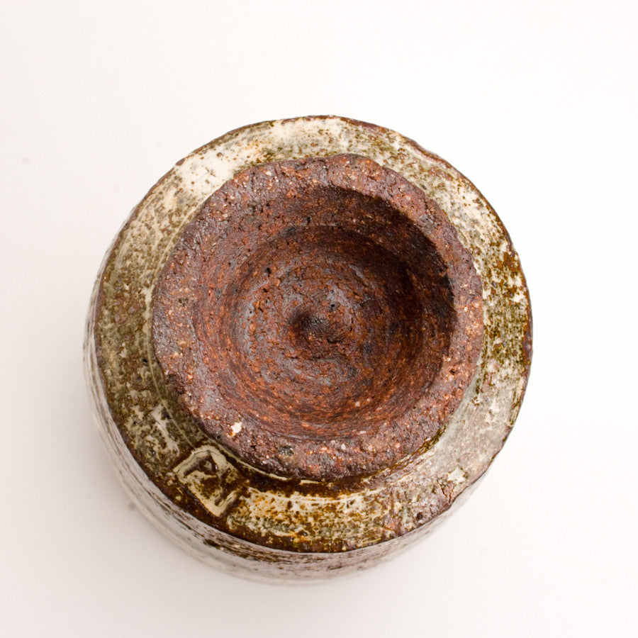 Wood fired local red clay. White slip under clear ash glaze. 4.5 x 3.5