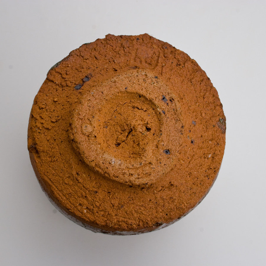 Wood fired local red clay. White slip under clear ash glaze. 4 x 3.5