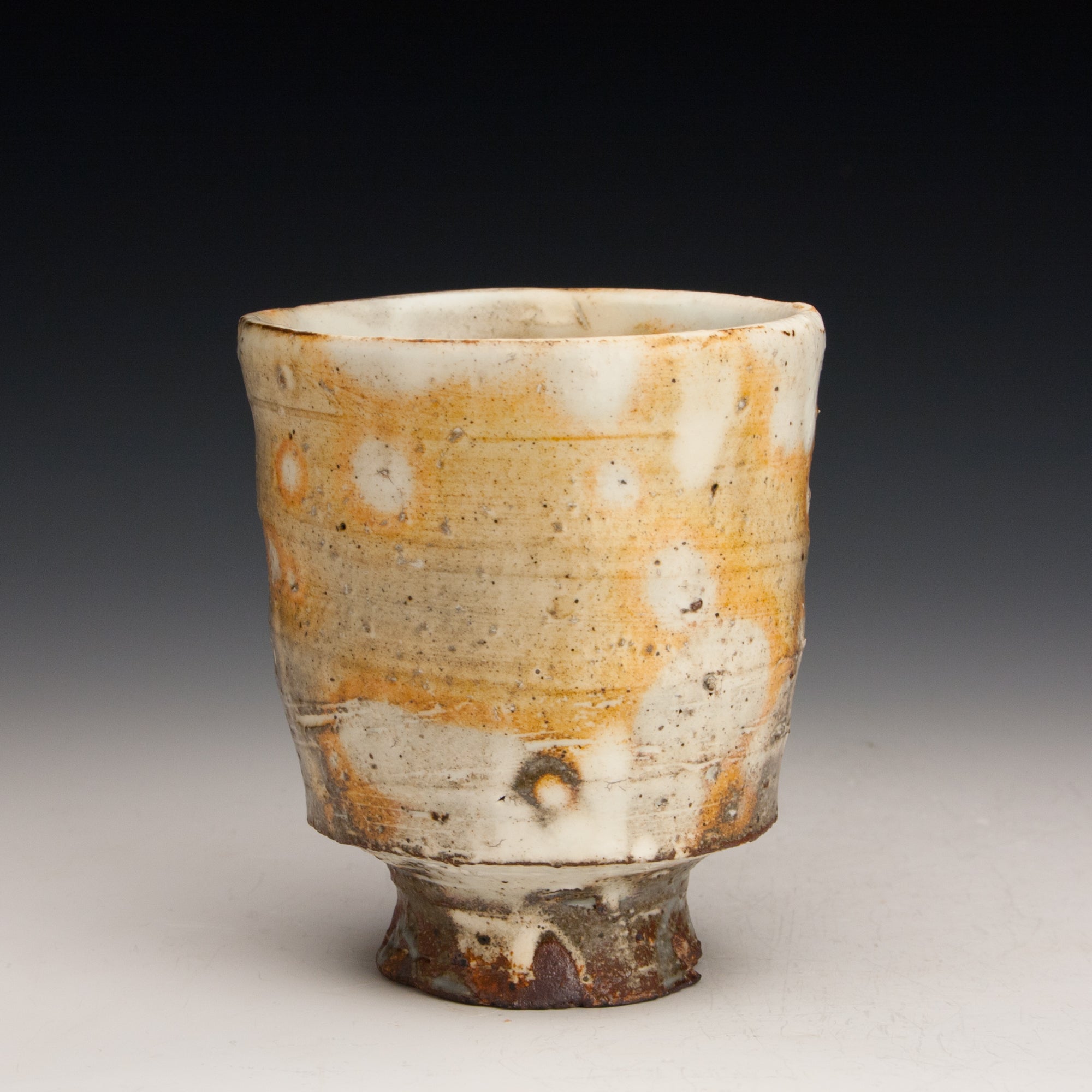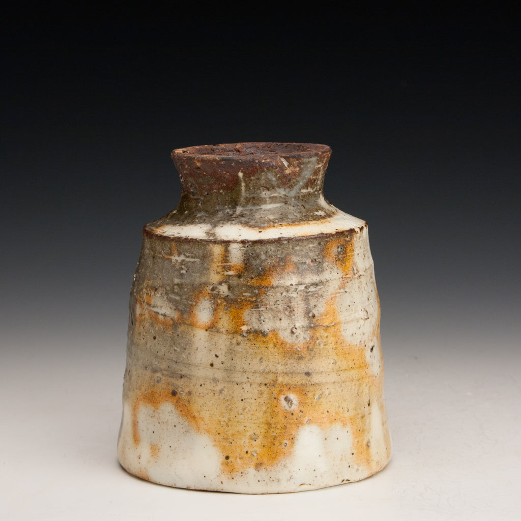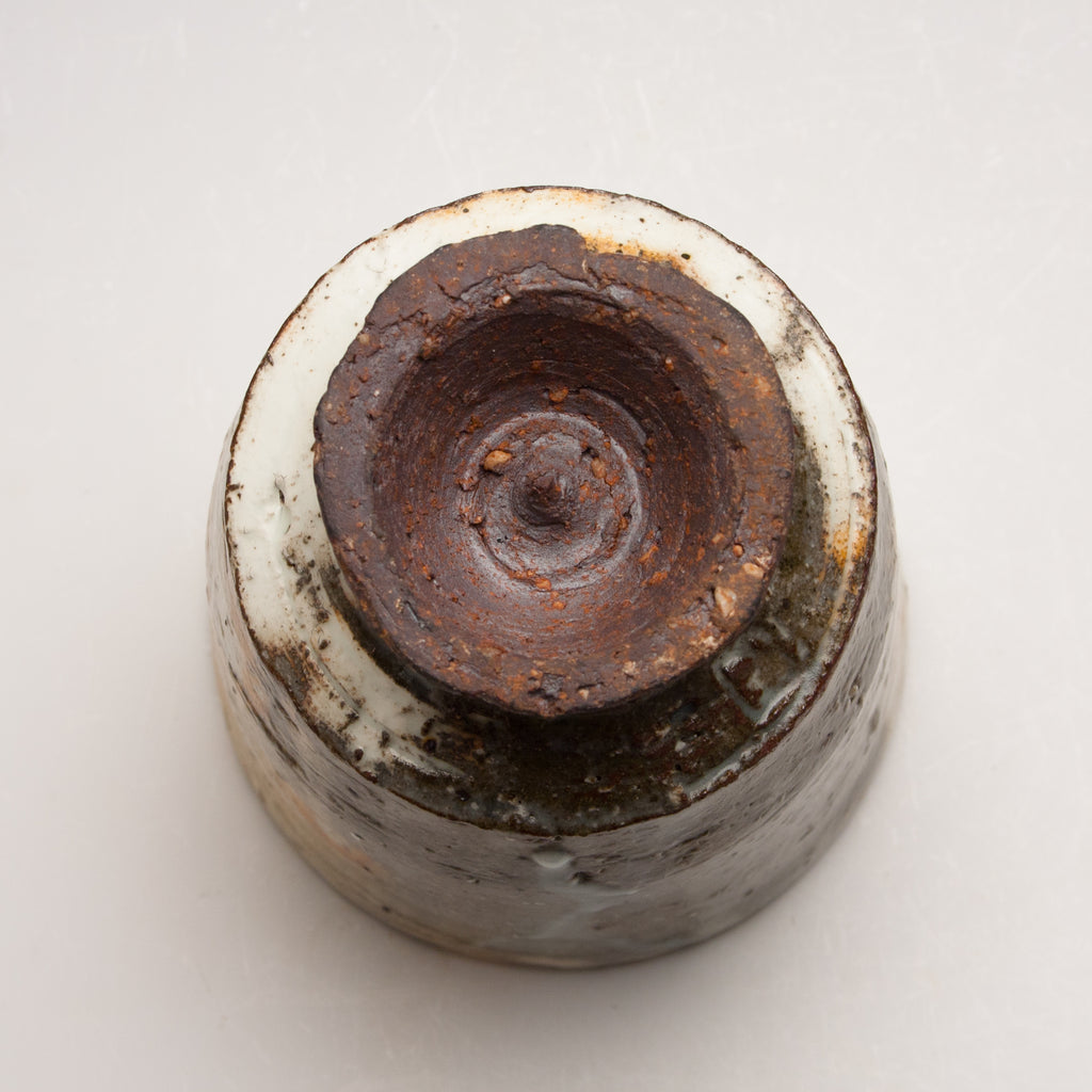 Wood fired local red clay. White slip and clear glaze. 3.5 x 4