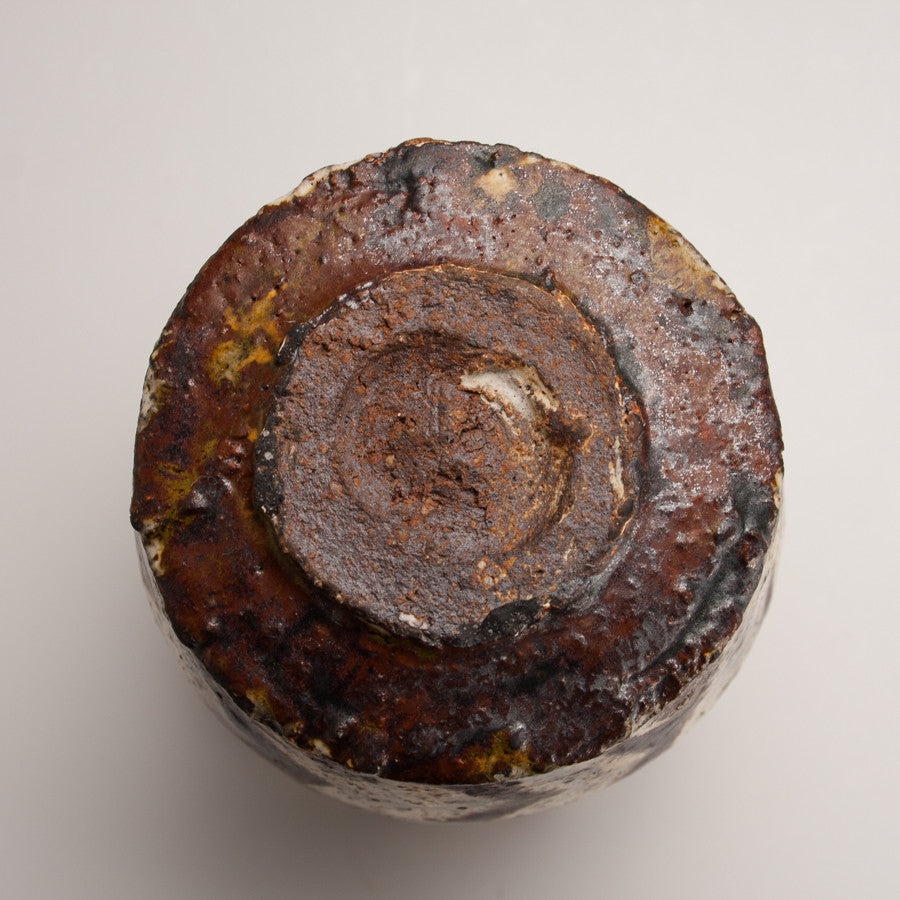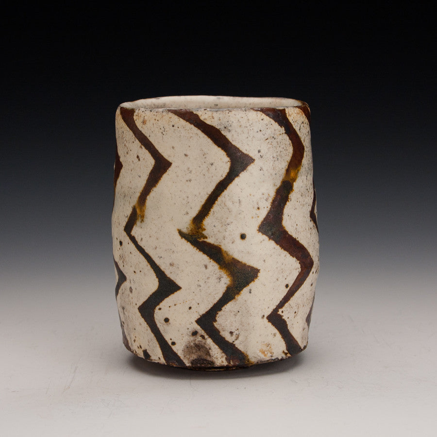 Wood fired local red clay.  Wax resist and iron zig zags.  3 x 4